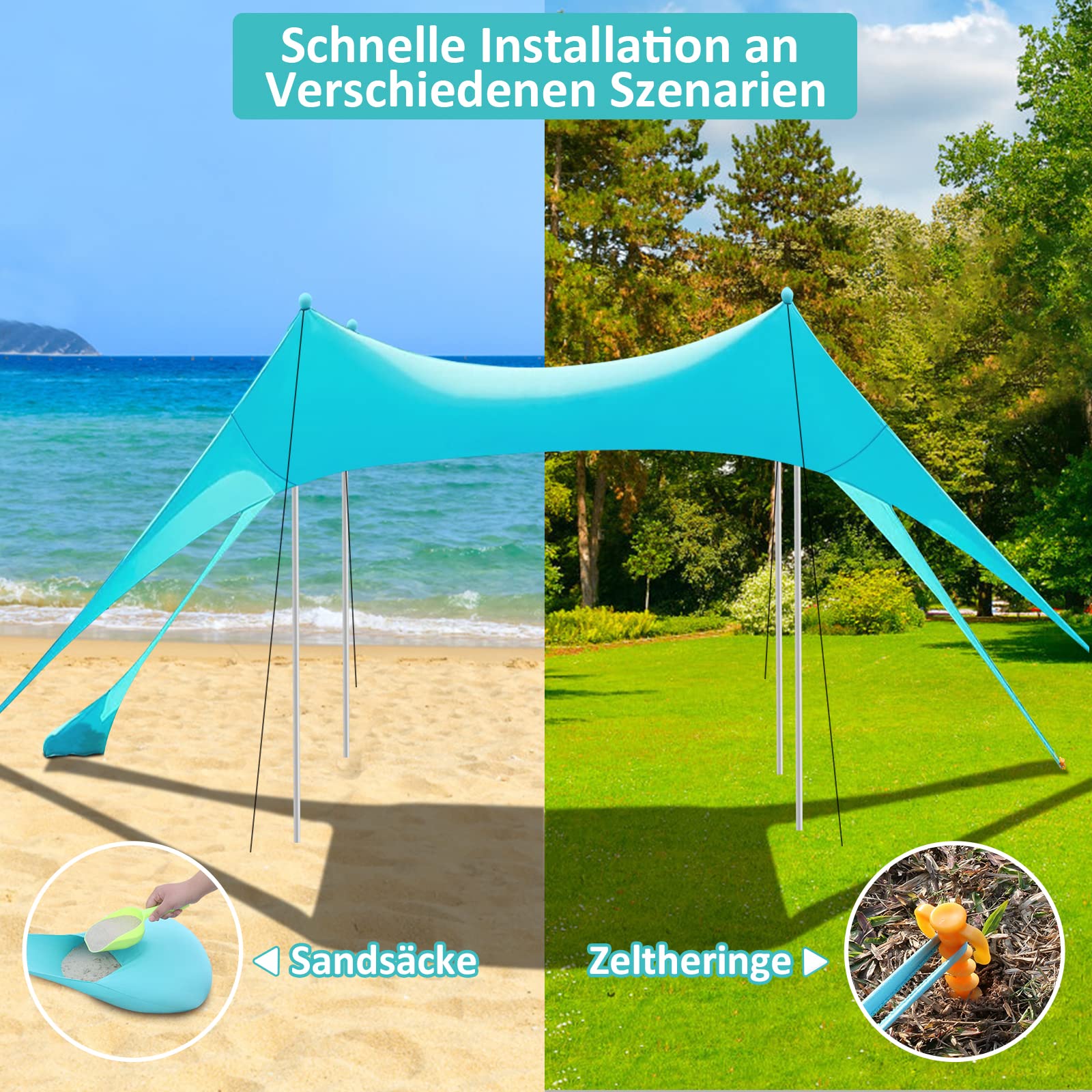 ["【Super Comfort & Wide Beach Tent】The size of the wide outdoor sleeping bag is 304 × 304 × 198cm. The shade is wide enough for 5-8 people and the support pole can be adjusted in position to achieve a more comfortable shade effect. Bring a safe haven for all your outdoor adventures with."]