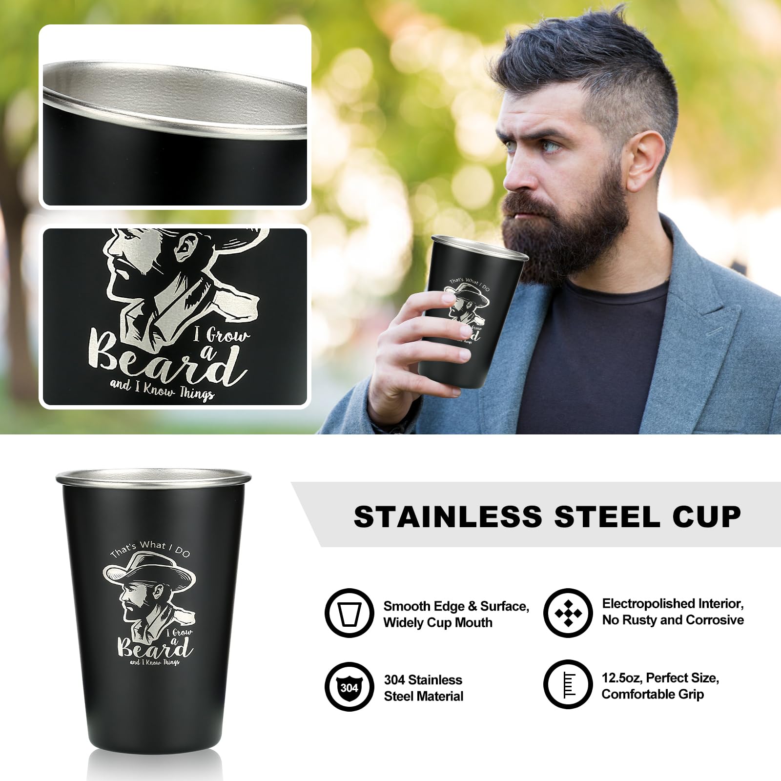 π "Beard Birthday Gift for Men" The beard set for men also includes a coffee mug printed with the funny words "That's what I do, I grow a beard and I know things." He can relax and enjoy a coffee or tea after grooming his beard. We also have a travel storage bag, a fantastic addition to any shaving and grooming set for men, allowing you to enjoy the perfect beard care wherever you go.