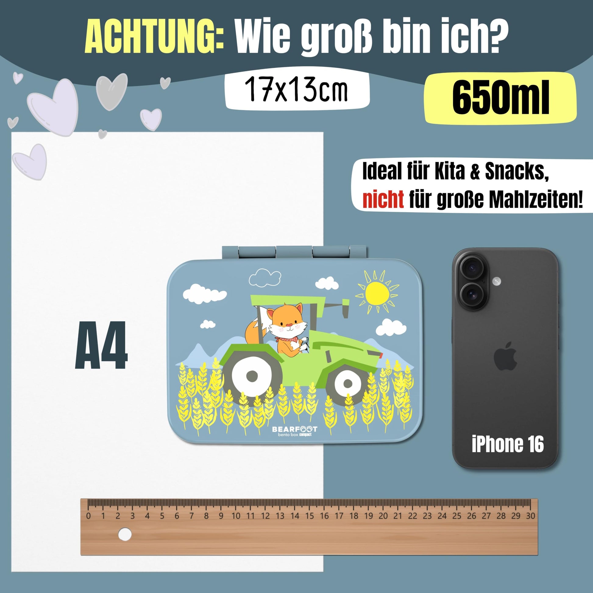 BEARFOOT Bento Box COMPACT | BPA-free kids lunchbox for school & kindergarten | Leak-proof lunchbox for girls & boys | Convenient, lightweight & compact (Tractor-blue, 650ml)