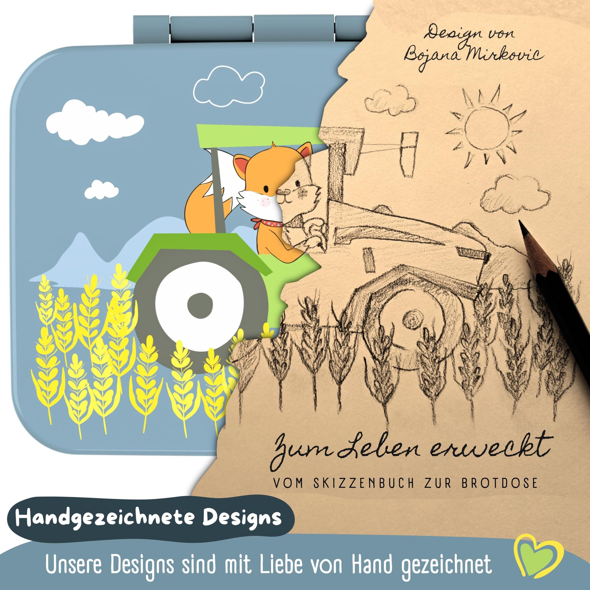 ["π₯ Lightweight & compact: This practical bento box with high capacity and low weight - perfect for kindergarten, school, or on the go.","π§ Leakproof & flexible: With a sturdy silicone seal and microwave-safe tray, everything stays securely stored. Extra sauce containers for versatile meals.","π¨ Creative & individual: Includes 84 letter stickers - parents and children can customize the lunchbox as desired. Perfect for girls & boys!","π§½ Easy to clean & safe: BPA-free, easy to clean, and freezer-safe. Made from food-grade material and tested by an independent lab.","ποΈ Child-friendly closures: Specially designed closures make the bento box easy for children to open and close - perfect for use in school, kindergarten, or on the go.","π± Sustainable & stylish: The lunchbox stands out with unique hand-drawn designs and is the ideal eco-friendly choice for everyday use."]
