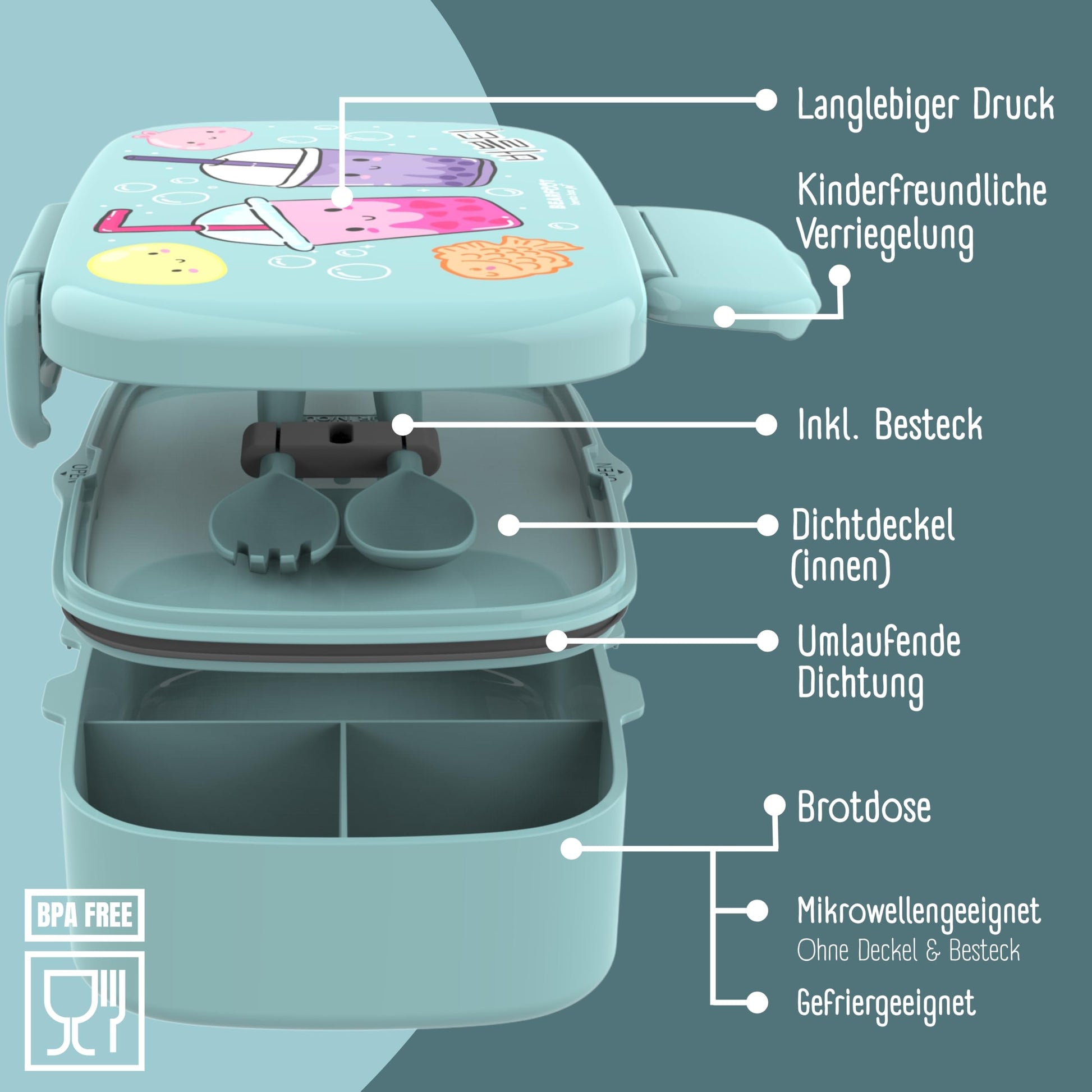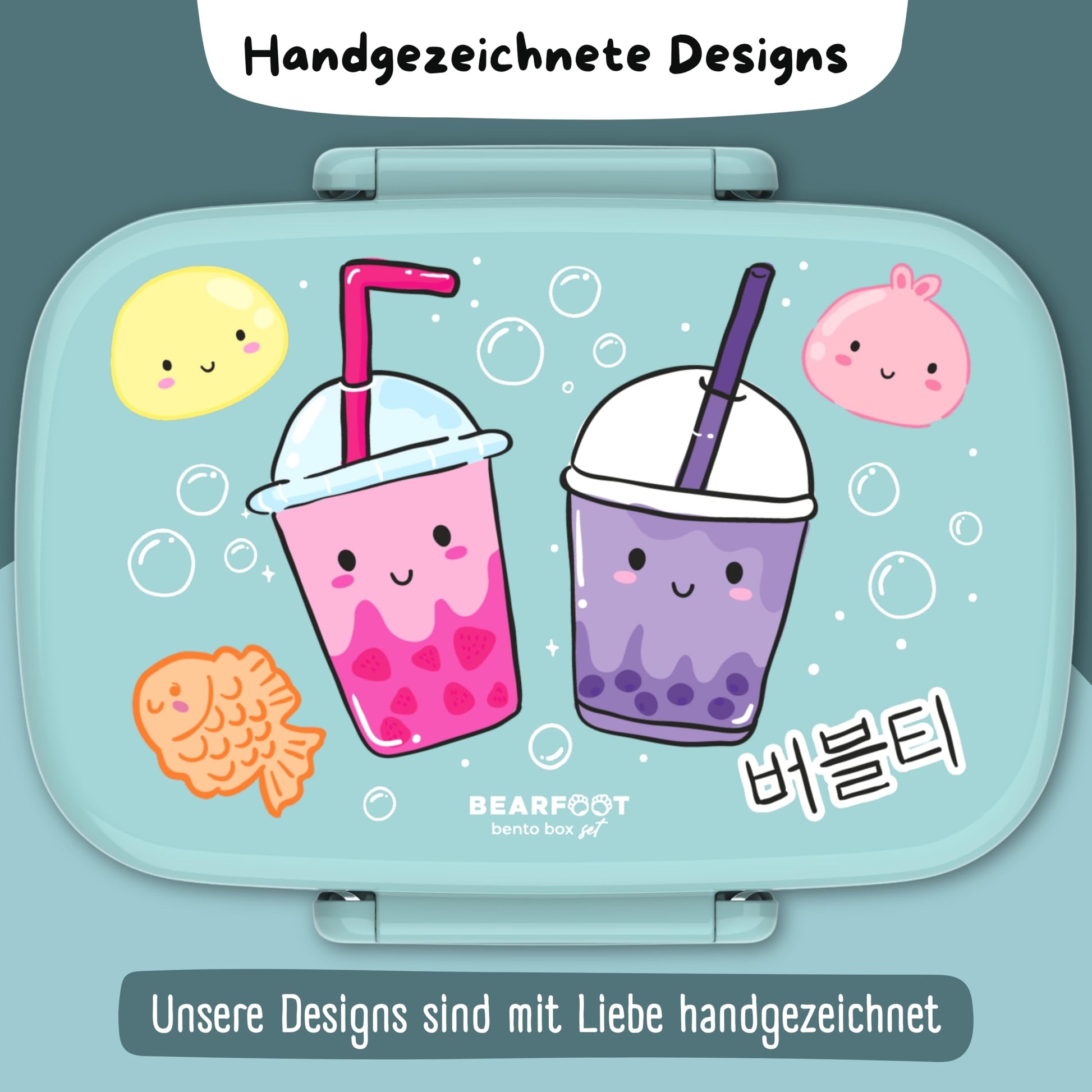 BEARFOOT lunch box for kids with compartments, BPA free, bento box, perfect for boys and girls, 100% leak-proof, ideal for school or daycare (BubbleTea-mint)