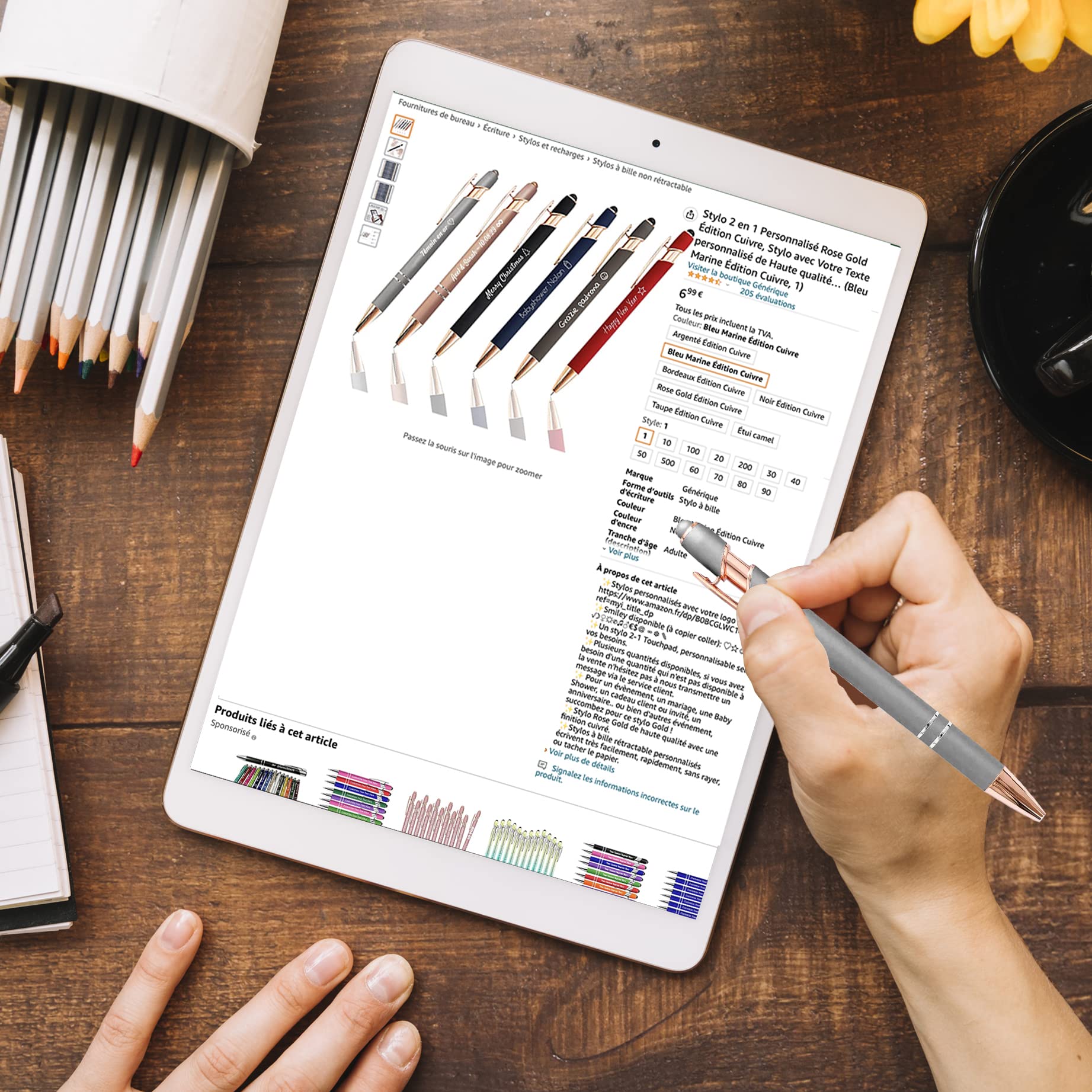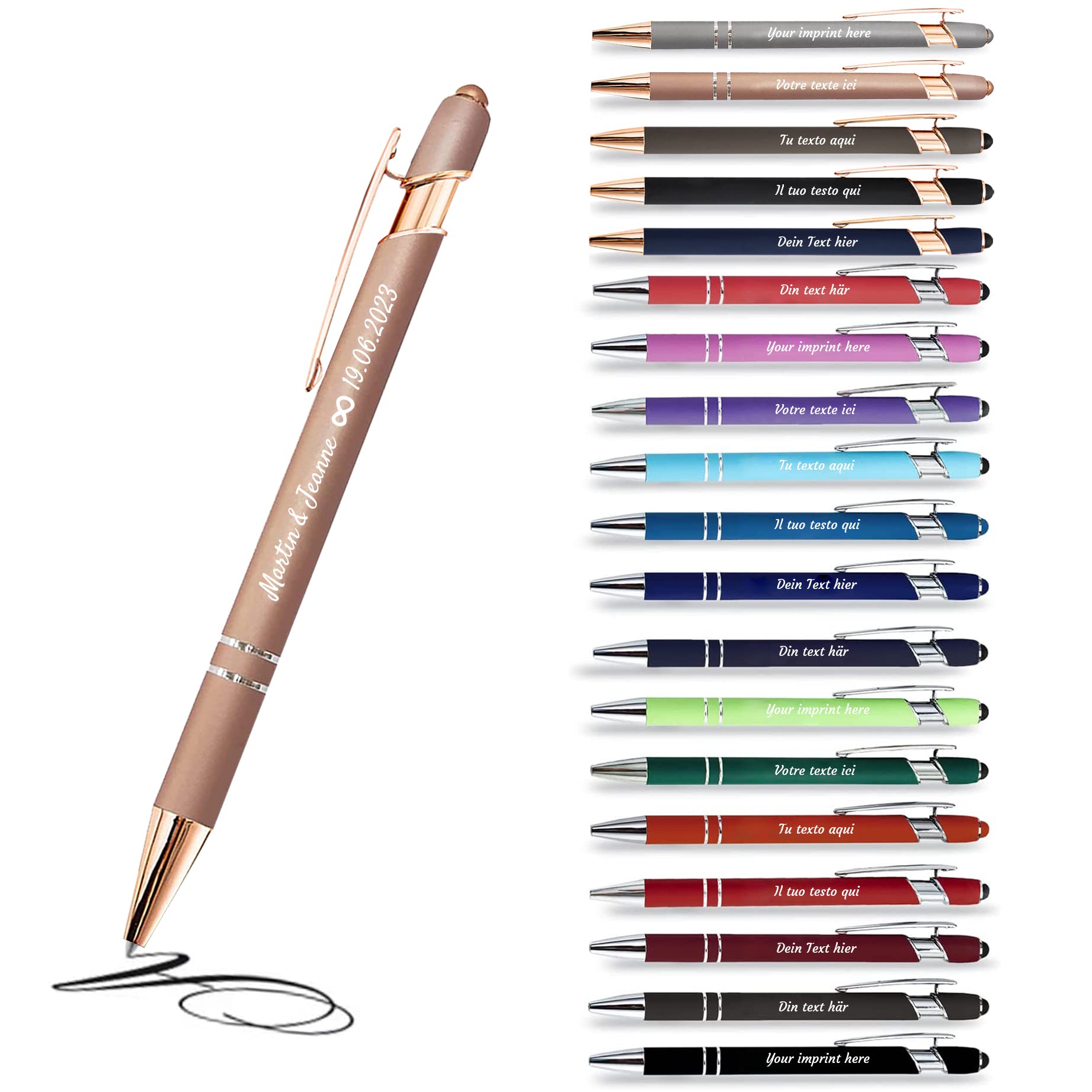 Beautiful Papers - x12 - Personalized 2 in 1 Pen - Personalized Ballpoint Pen with Engraving I Rose Gold Metal I Softtouch Feeling I write in black I integrated Stylus