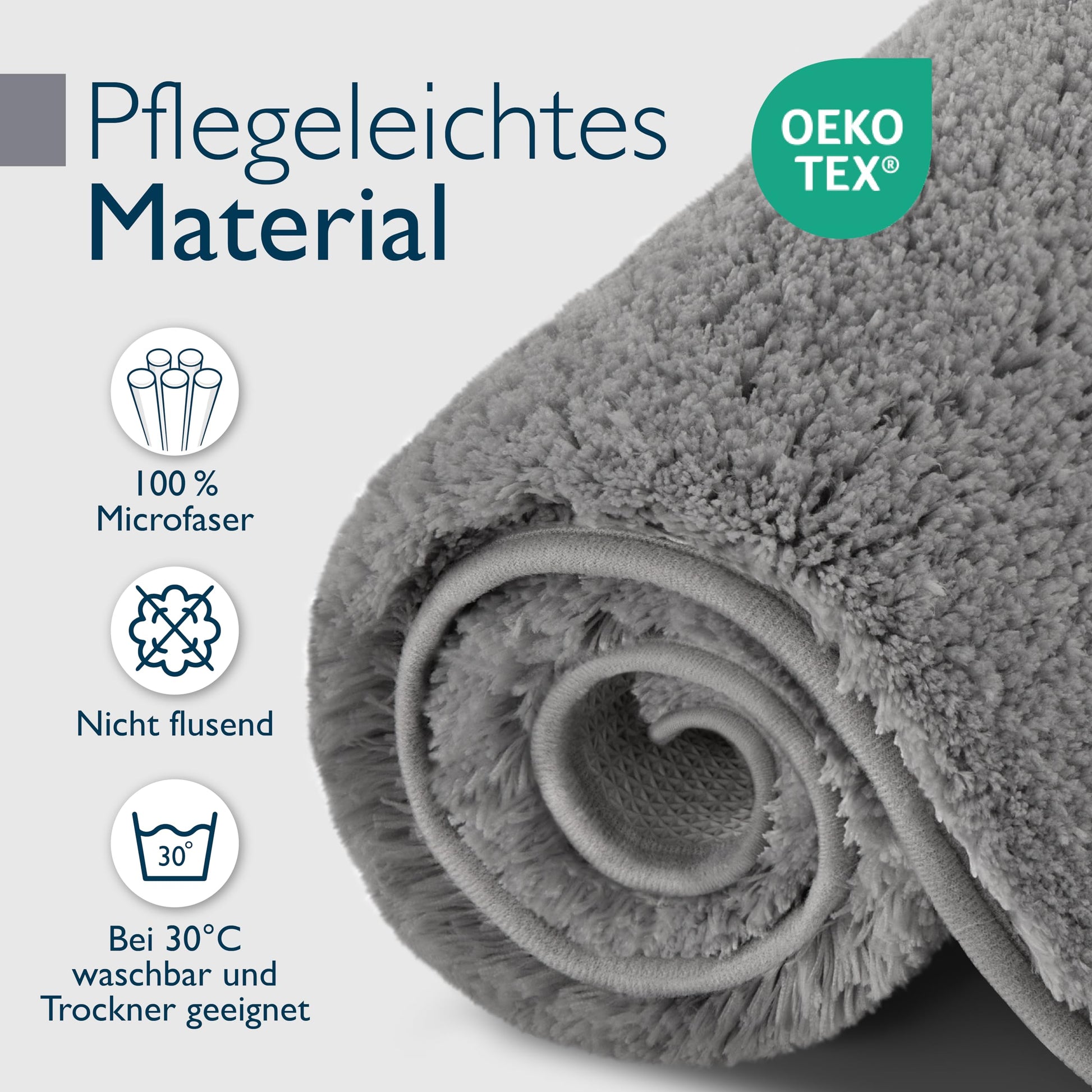 Beautissu bath mat non-slip 120x70 cm - shower rug high pile bath mat non-slip washable shaggy look - fluffy bath rug shower bathroom mat large - gray bath mat BeauMare FL