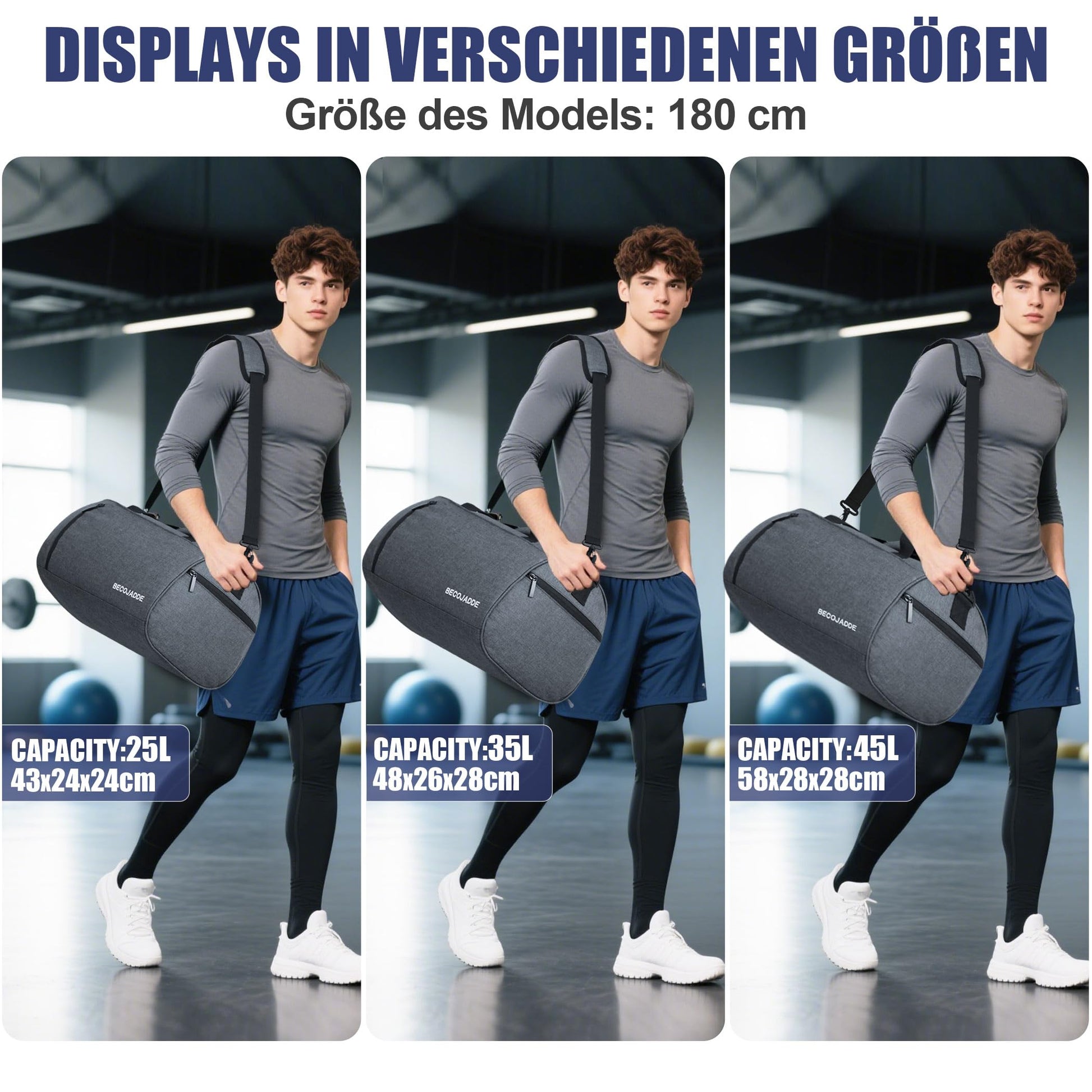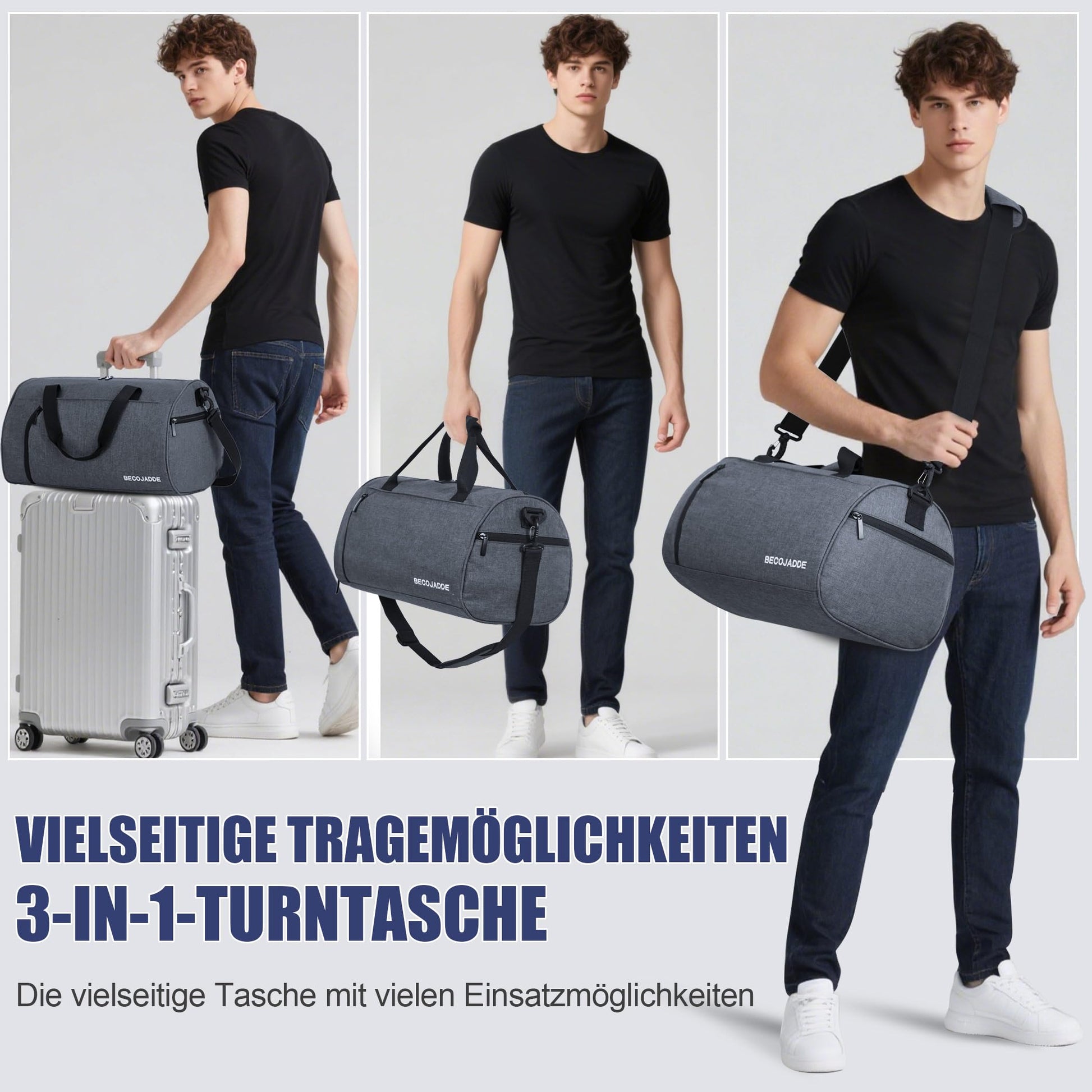 BECOJADDE Sports Bags for Women and Men, 25L Travel Duffel Bag Overnight Bag with Shoe Compartment & Wet Pocket, Waterproof Carry-On Bag for Sports, Gym, Swimming, Gray