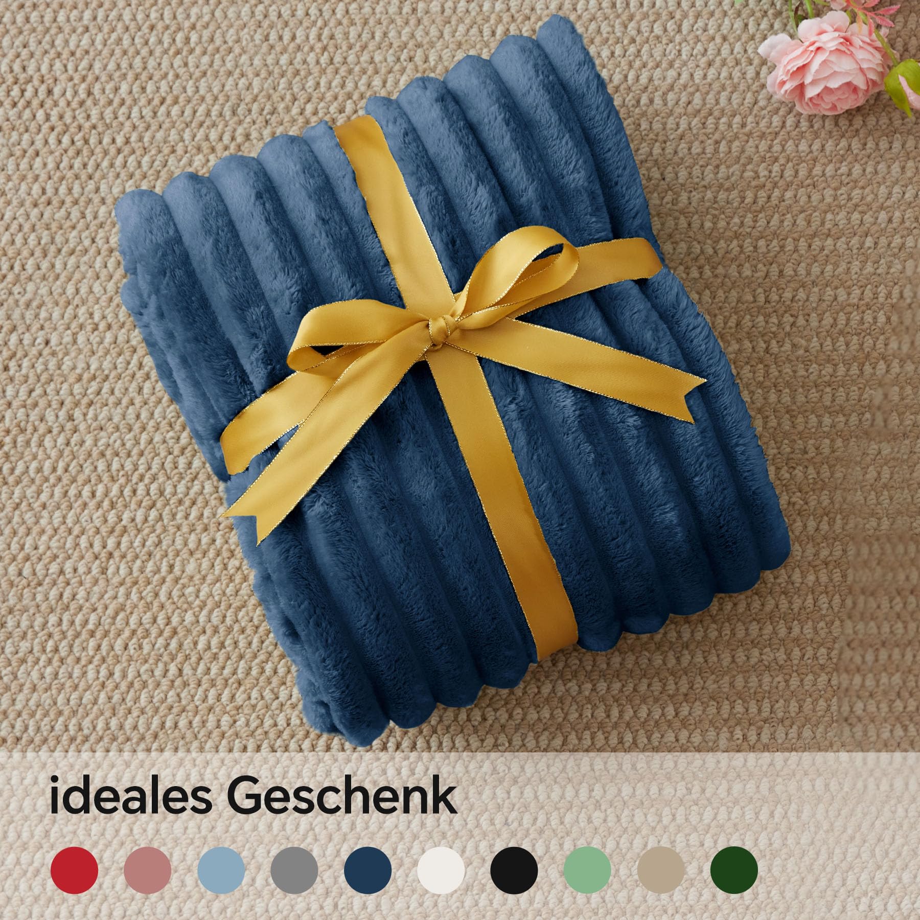 BEDELITE Cozy Blanket Plush Large - Soft Flannel Blankets Blue 220x240 for Bed, Decor Striped Cord Fleece Blanket Navy as Bedspread for Bedroom, XXL Blanket Wide Use