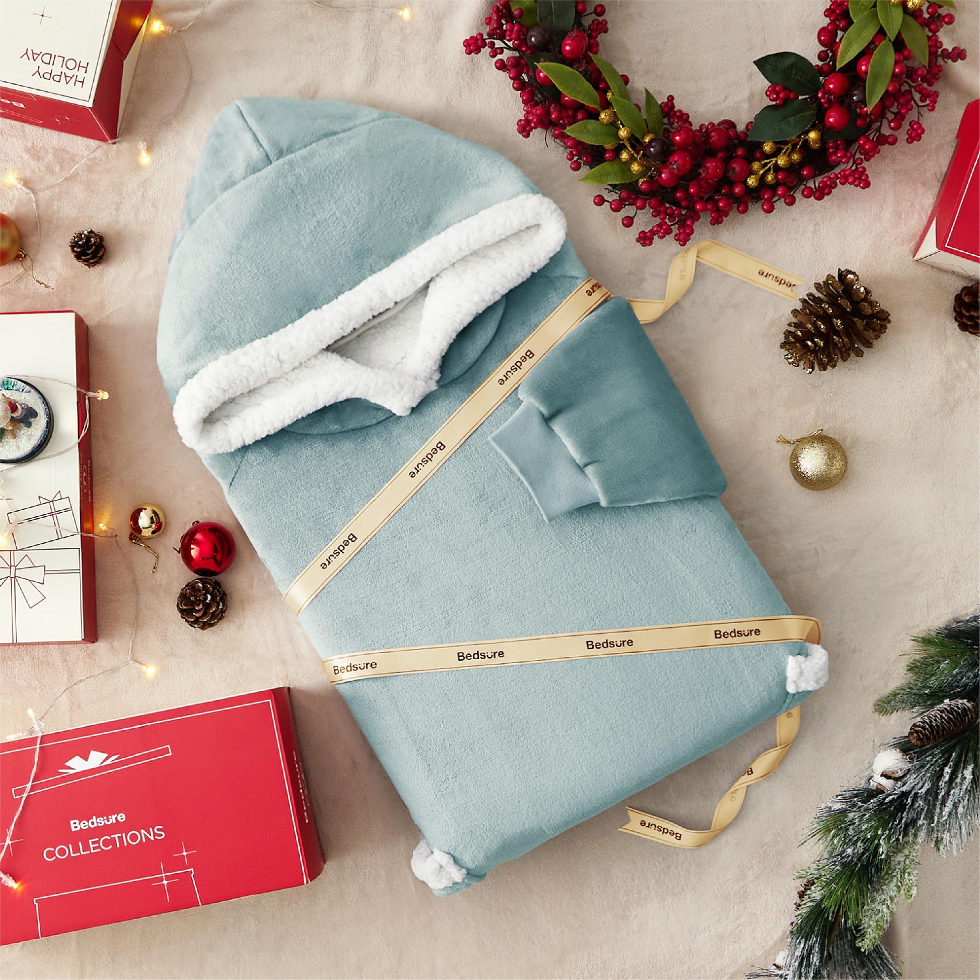 BEDSURE Hoodie Blanket with Sleeves and Hood - Sherpa Sleeve Blanket for Women, Green, 95x83cm. A perfect gift for women to stay warm and cozy in style.