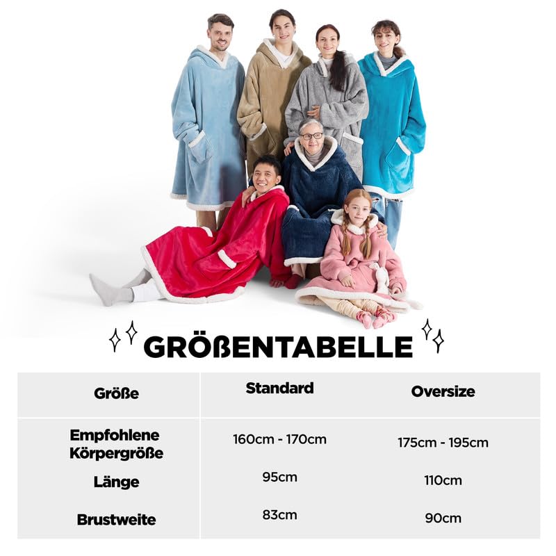 ["Exceptional warmth: The high-quality flannel outer fabric provides an incredibly soft hand feel, while the Sherpa inner lining ensures reliable winter warmth.","Gifts for your loved ones: Available in various colors, this soft Wearable Blanket with Sleeves is perfect gifts for women, men, mothers, daughters, girlfriends, grandmothers, or anyone else for birthdays, Thanksgiving, Christmas, and so on.","Versatile: Whether you're snuggling on the couch, tackling your workday from home, reading a book, or just relaxing somewhere in between, this blanket with sleeves offers cozy comfort wherever you are.","Comfortable: Store small items in the deep side pockets or keep your hands warm, while ribbed cuffs provide a good fit around your wrists and trap the warmth.","Durable: The poncho blanket is OEKO-TEX Standard 100 certified and uses a clean seam technique for more stable stitches, ensuring improved durability. It is machine washable and features a unique dyeing technique that prevents fading after washing."]