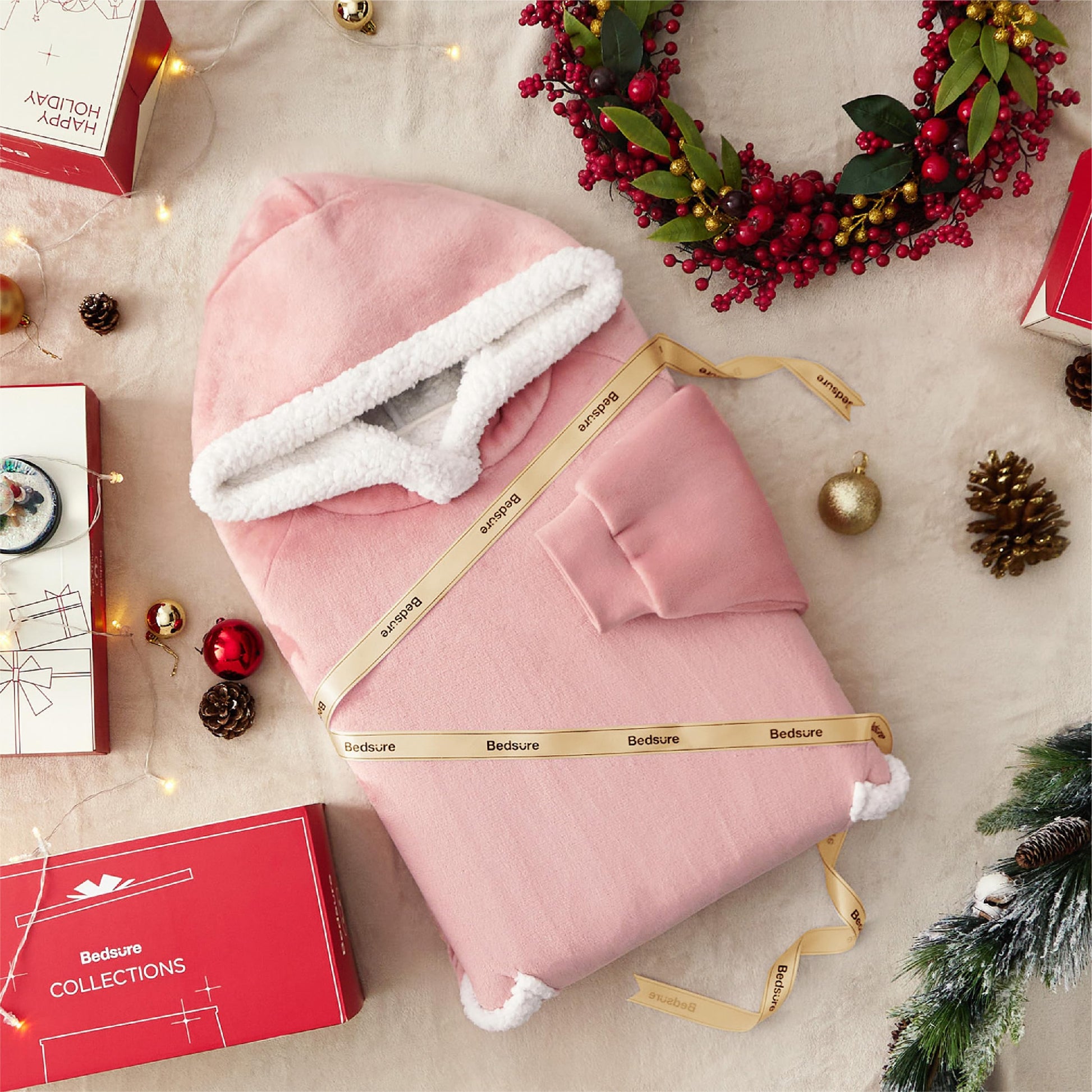 BEDSURE Hoodie Blanket with Sleeves and Hood - Wearable Blanket with Sherpa Sleeves for Women as Gifts, Fried Egg Design, 95x83cm, Pink