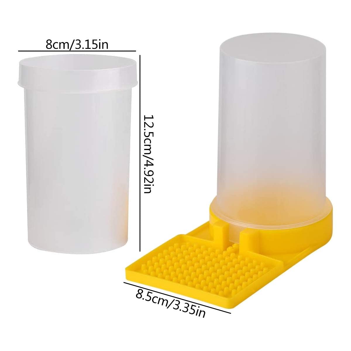["High-quality Material: The bee water feeder is made of high-quality, durable plastic, long-lasting and lightweight, non-toxic, saving time and energy. Bee water dispenser, easy to use and clean, safe for bees.","Unique Design: The bee drinking nest is very easy to observe how much water is still available and plan accordingly without disturbing your bees. Placed above the inner cover and central hole, it allows the bees access through the center.","Easy Operation: Place the bee water access device in the right place seconds after installation to allow the bees to naturally find water, providing more comfort.","Easy to Clean: The plastic bee entrance is highly transparent, removable, and very easy to clean.","Wide Application: Beehive feeder for spring or summer, beekeeping, bee feeding."]