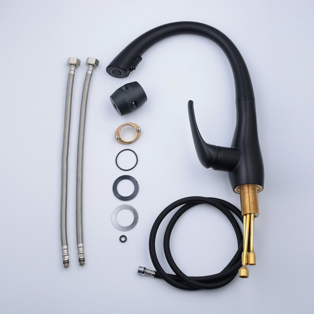 Beelee pull-out kitchen faucet with spray, single handle sink faucet, black paint, BL1749B.