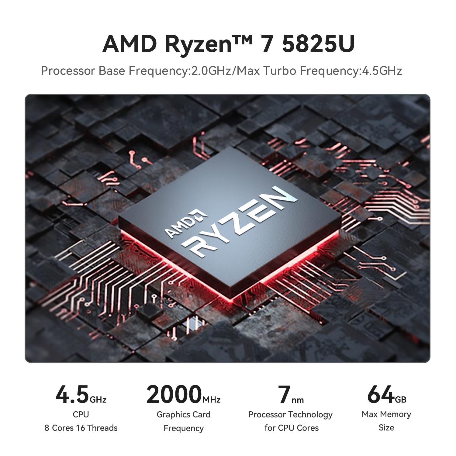 Beelink AMD Mini PC Ryzen 7 5825U (8C/16T, up to 4.5GHz), SER5 Pro Mini Computer with Windows 11 Pro, 32GB DDR4 RAM/500GB M.2 PCIe 3.0 SSD, 4K Triple Displays, DP, HDMI, Type-C, WiFi 6, BT 5.2, 2.5G LAN.