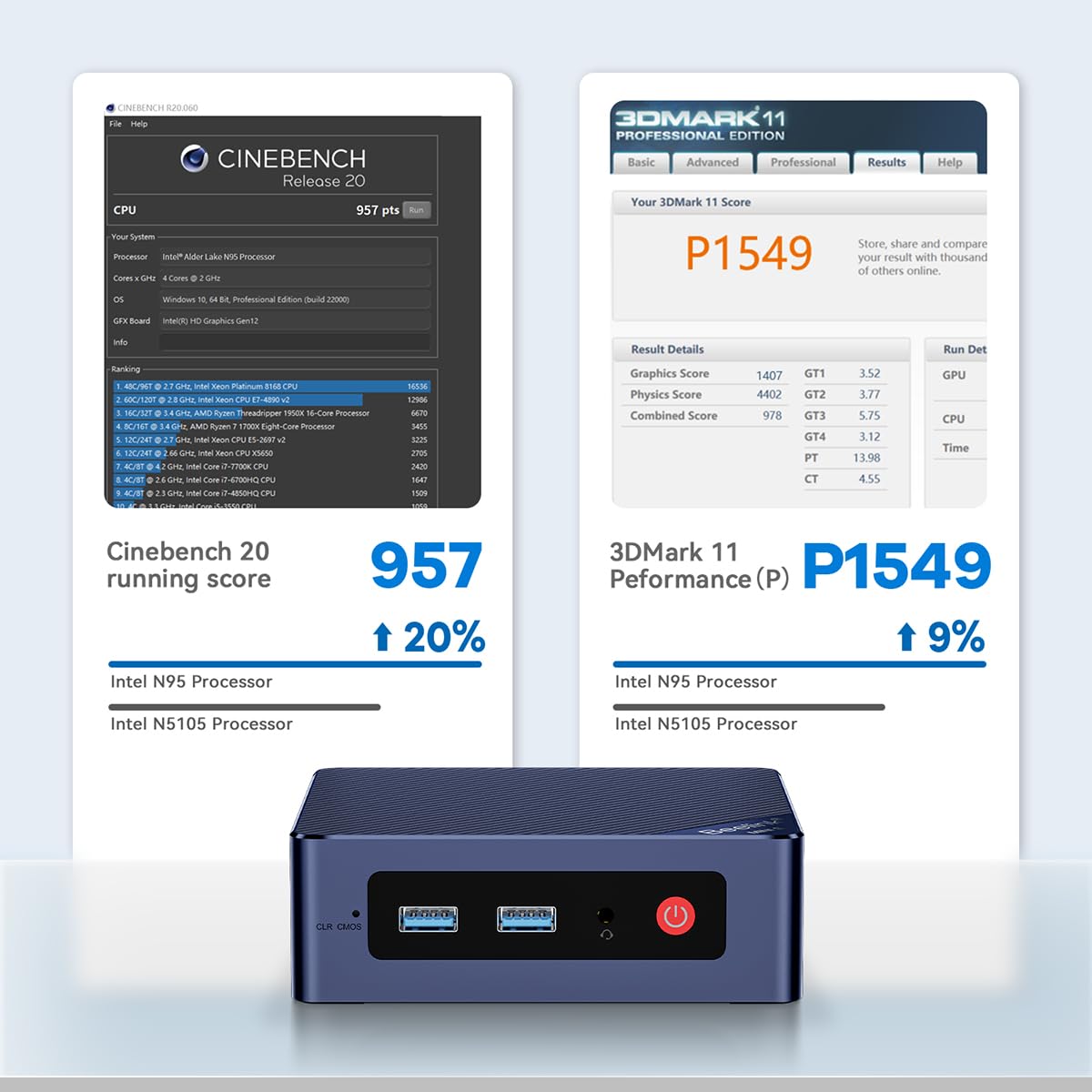 🔥【Intel Alder Lake-N95】 Beelink mini pc is equipped with faster Intel N95 12th Generation processors, with a maximum turbo frequency of up to 3.40 GHz (4C/4T). If you are looking for a quiet and compact PC that is used for visual home entertainment, video streaming, web browsing, work, this Intel N95 processor will be perfect for you.