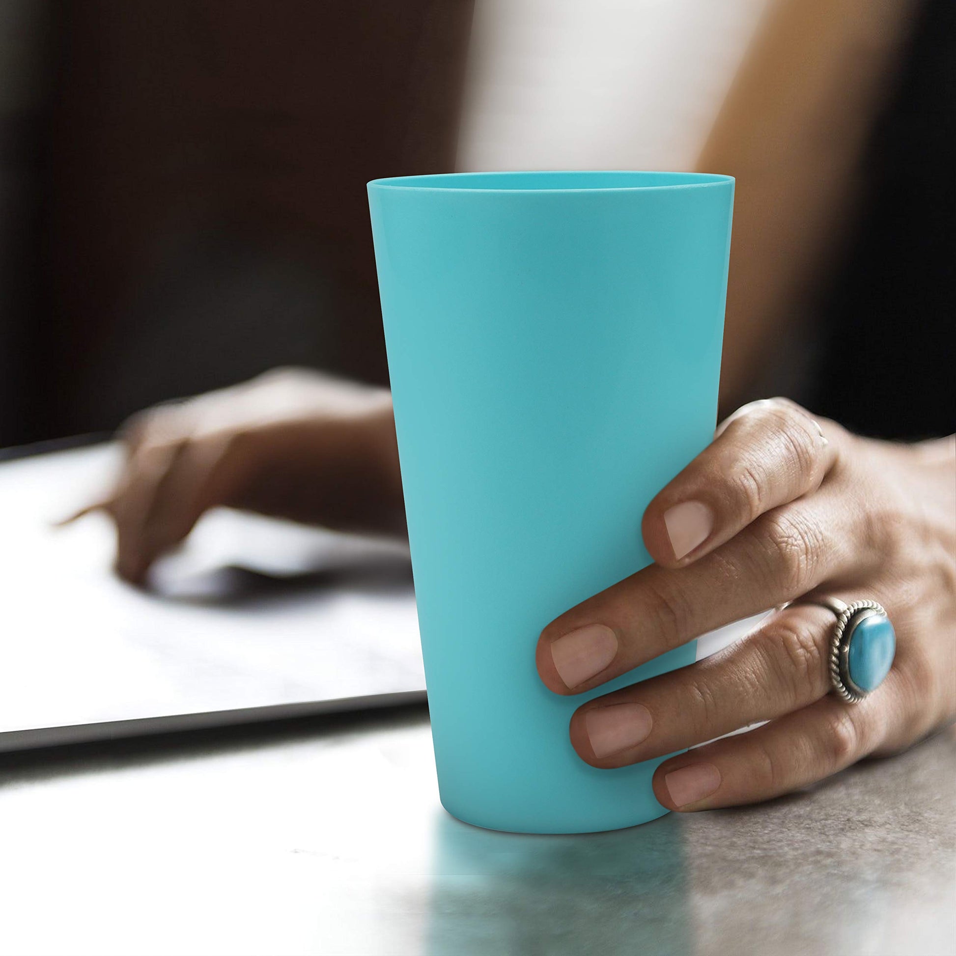"24 PLASTIC CUPS: This set of drinking cups includes 24 sturdy plastic cups. Each set contains 4 colors: green, sky blue, lavender, and salmon pink. The reusable plastic cups hold 20 oz of liquid and are 6.1 inches tall. Each plastic drinking cup has a diameter of 3.5 inches. Please wash the plastic cups before first use.