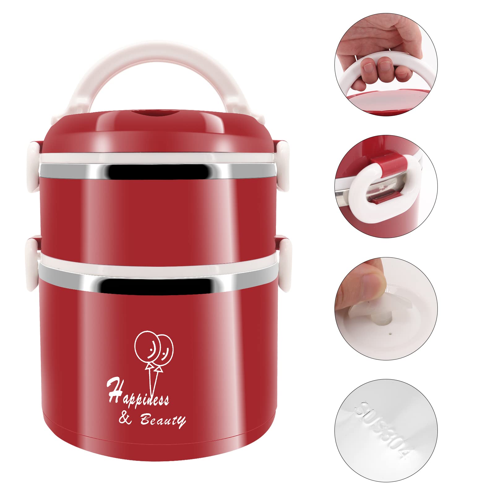 Beowanzk Thermal Lunch Box, Stainless Steel Bento Box with compartments for adults and kids, Leak-proof Insulated Lunch Box Bento Box BPA-free with carrying bag (Red)