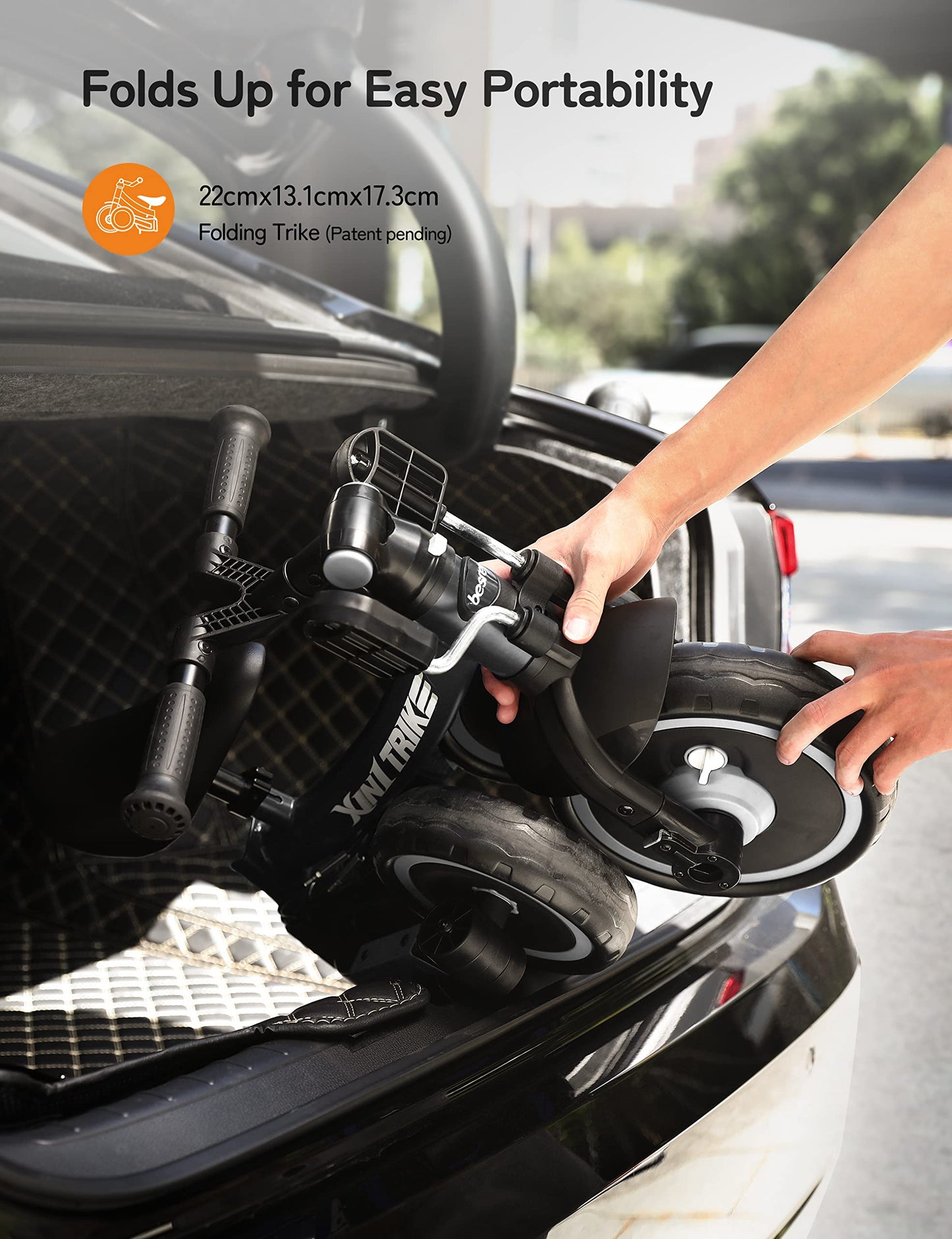 Besrey 7 in 1 Toddler Tricycle with steering handle for 1-5 years, foldable wheels, toddler bike with wheel coupling, larger wheels, detachable pedals, adjustable seat height, Black