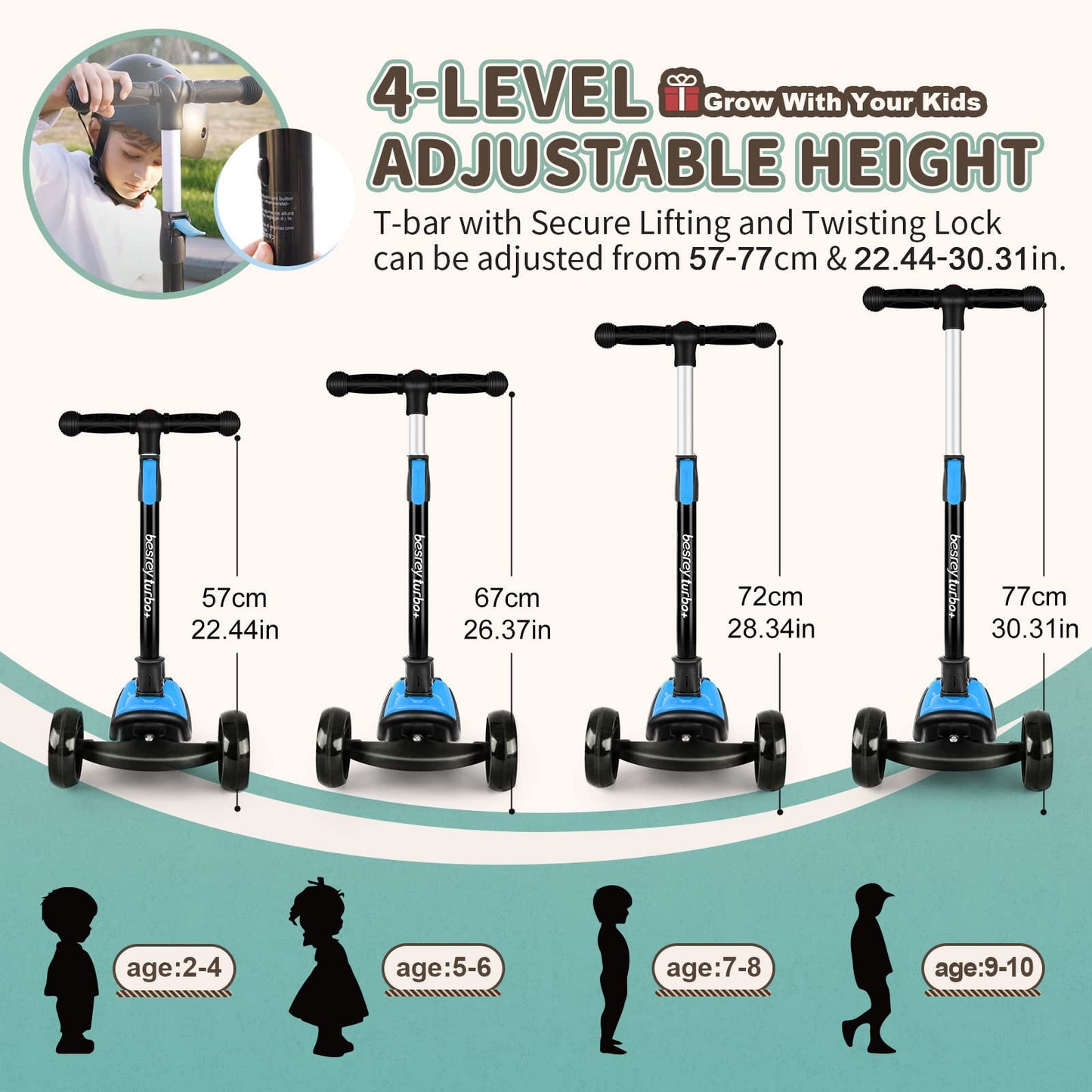 Besrey Kids Scooter, the safe three-wheel scooter with PU LED light-up wheels, foldable adjustable height, lightweight and can hold up to 50 kg, suitable for toddler boys and girls.
