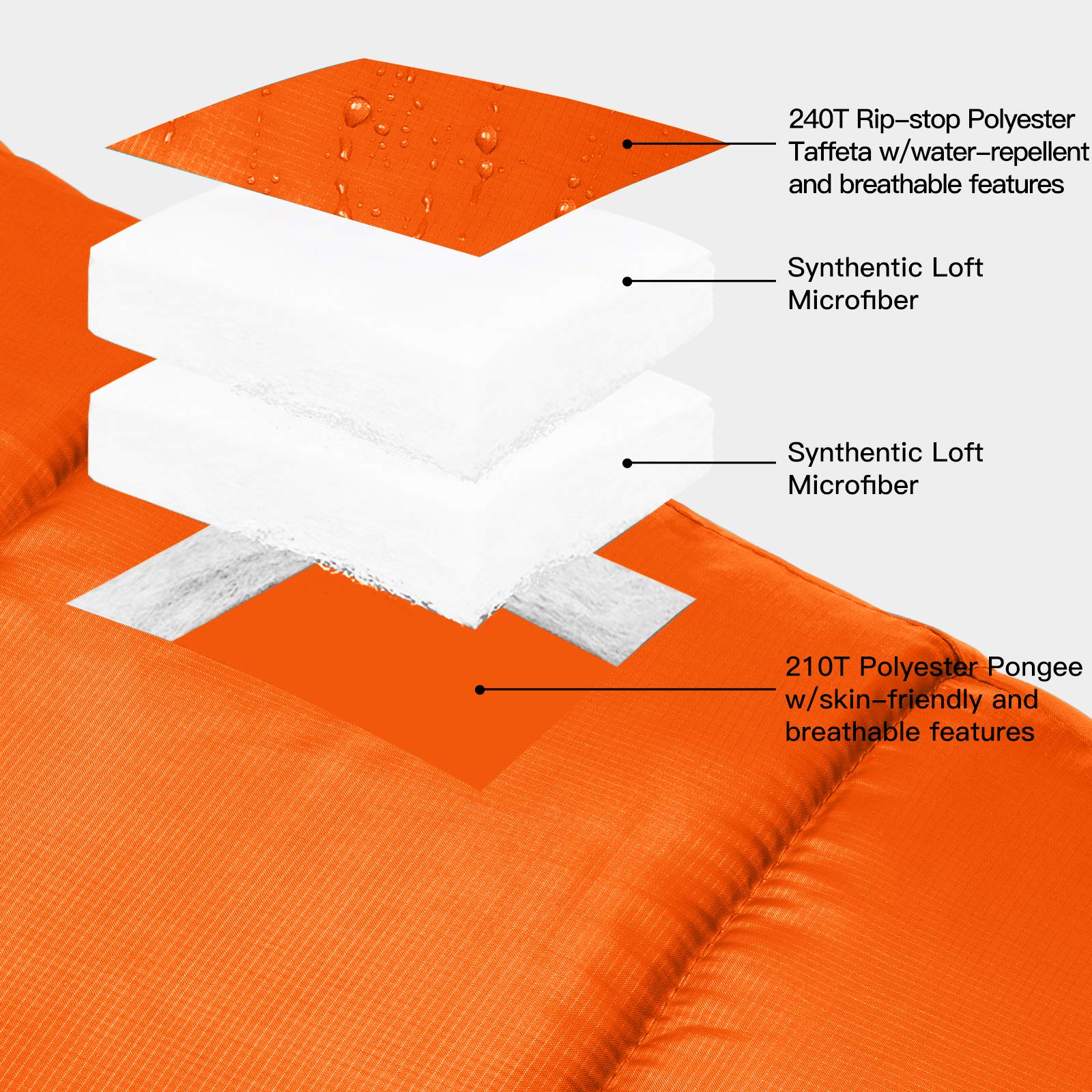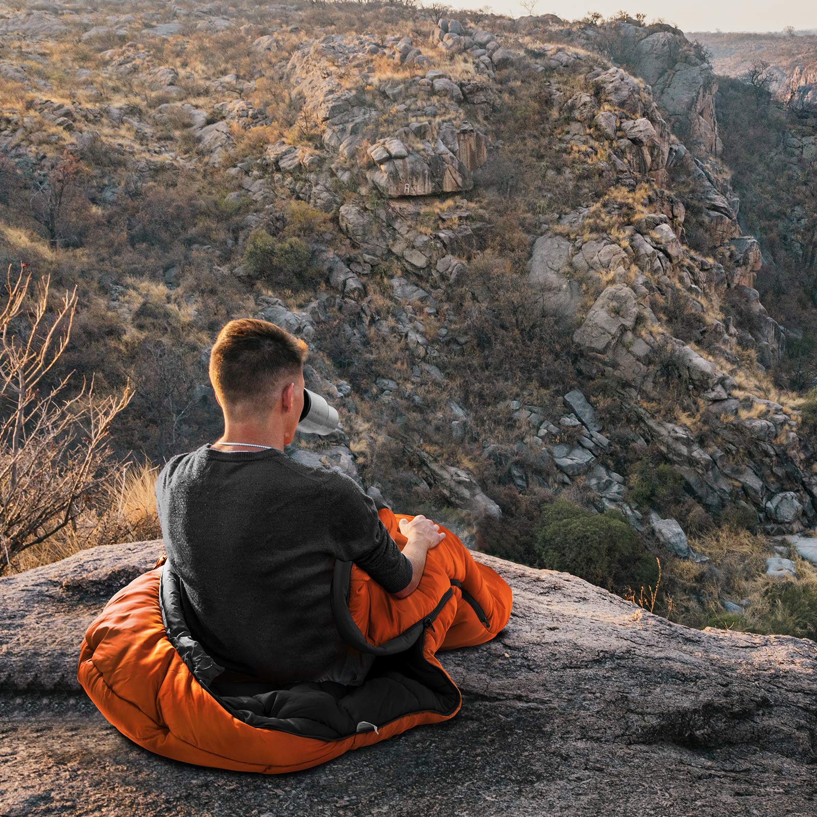 HUMANIZED DESIGN: It is great for camping, hiking, traveling, and not just a camping sleeping bag, but comfortable to "wear" while watching TV, as a quilt at home, or while car camping.