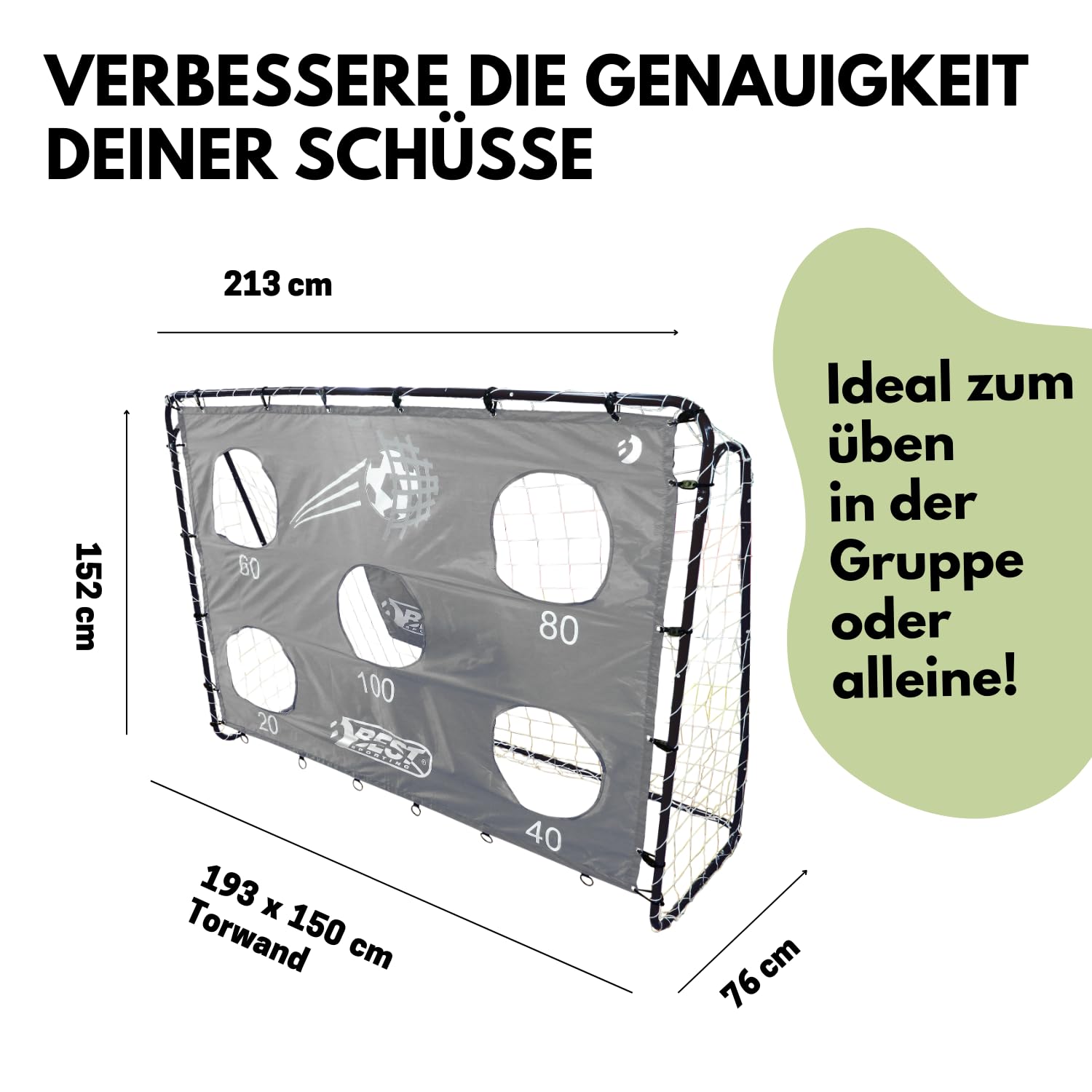 Best Sporting soccer goal with target wall I soccer goal 213cm x 152cm I soccer goal for kids with various color patterns I high-quality kids goal with net, target wall & pegs I soccer goal Gray