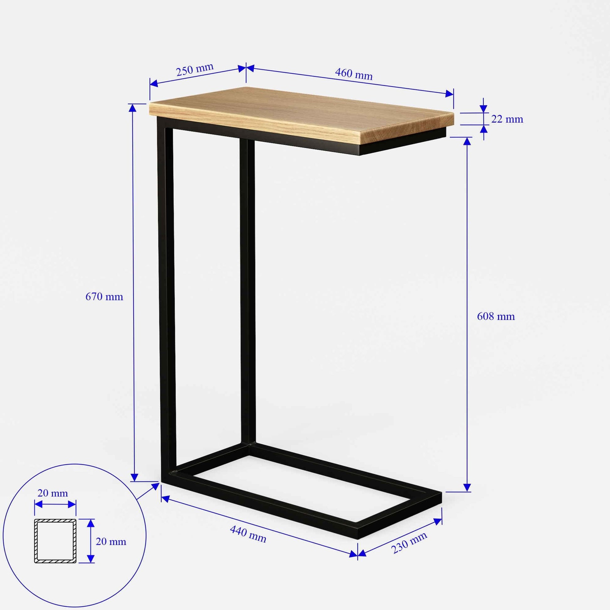 "Real wood: A small table for use as a side table made of high-quality A+ oak wood. Each wooden tabletop is thoroughly checked before being assembled as a sofa table. Tabletop thickness is 22 mm.