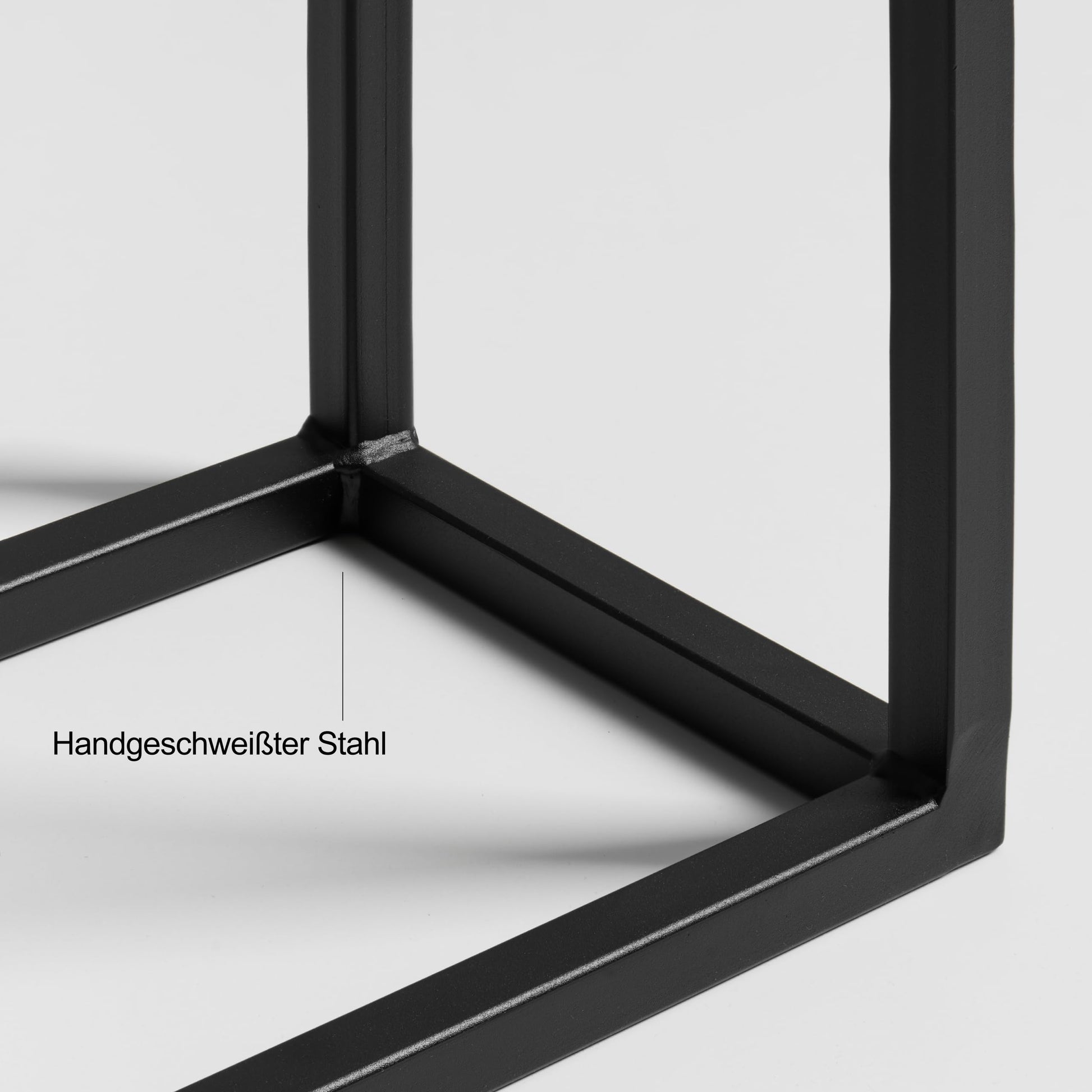 Coating: Each narrow side table is double-oiled and the metal frame has a black or white powder coating. Compared to other metal side tables, our oak side tables are more scratch-resistant and durable.