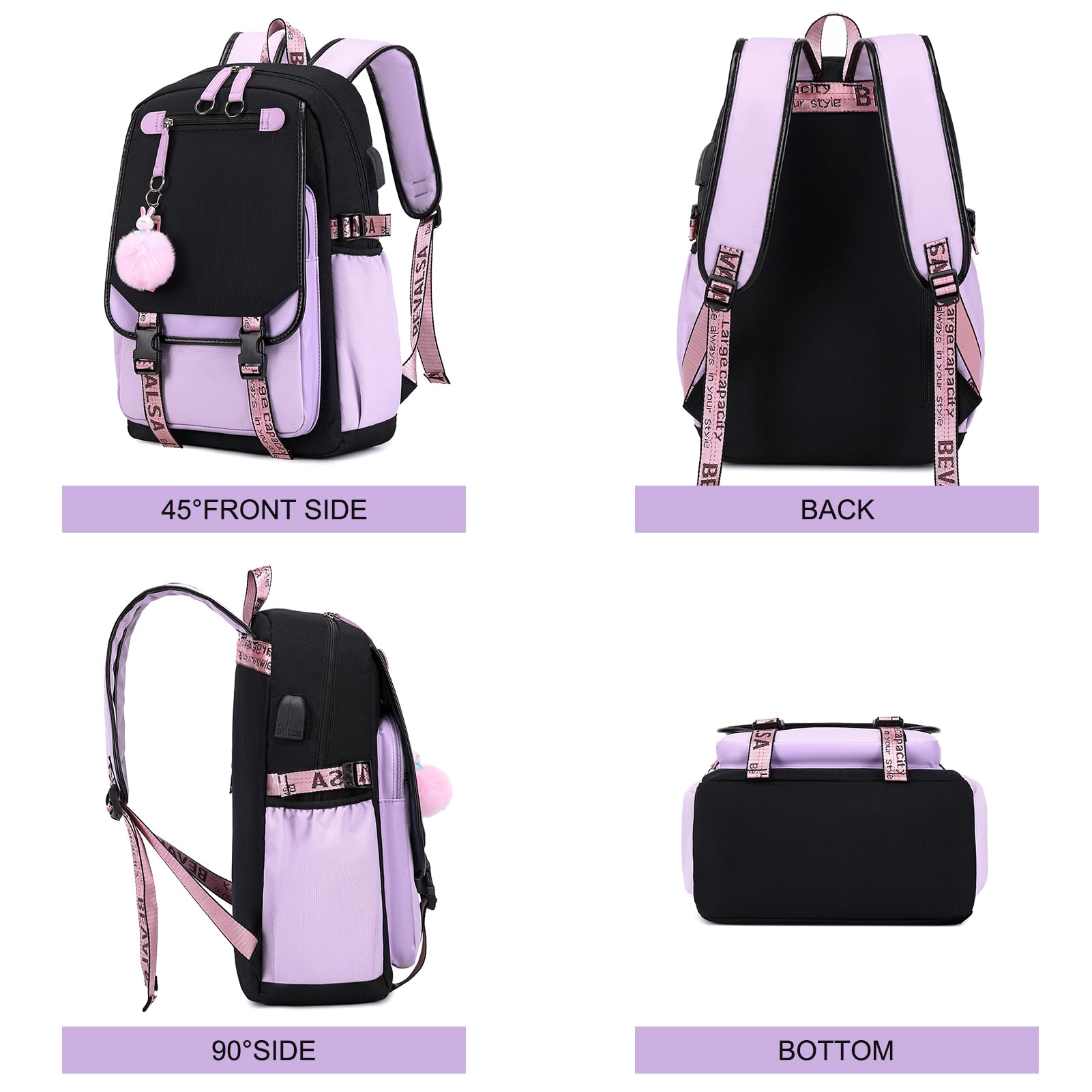 Bevalsa school backpack for girls teenager with school bags set, leisure backpack large 20L waterproof school bag backpack casual daypacks for kids women (purple)