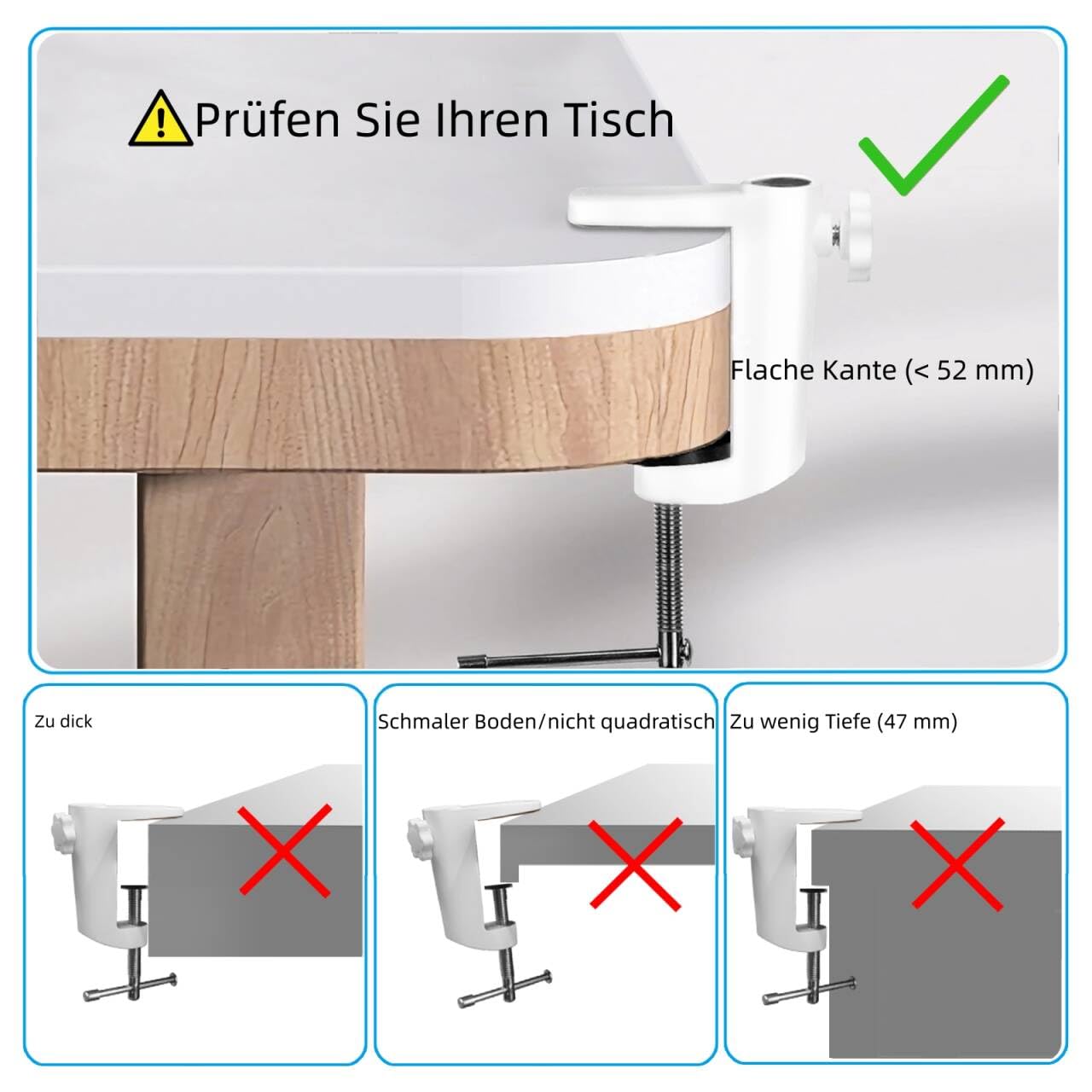 "Stable & space-saving: Sturdy metal clamp for table edges up to 5.2 cm thick. Non-slip rubber pads protect surfaces. No slipping or noise."