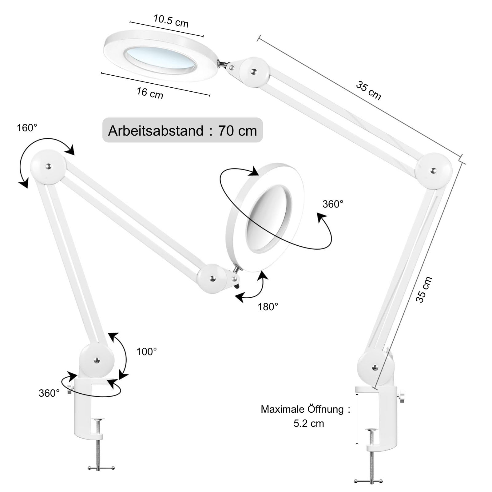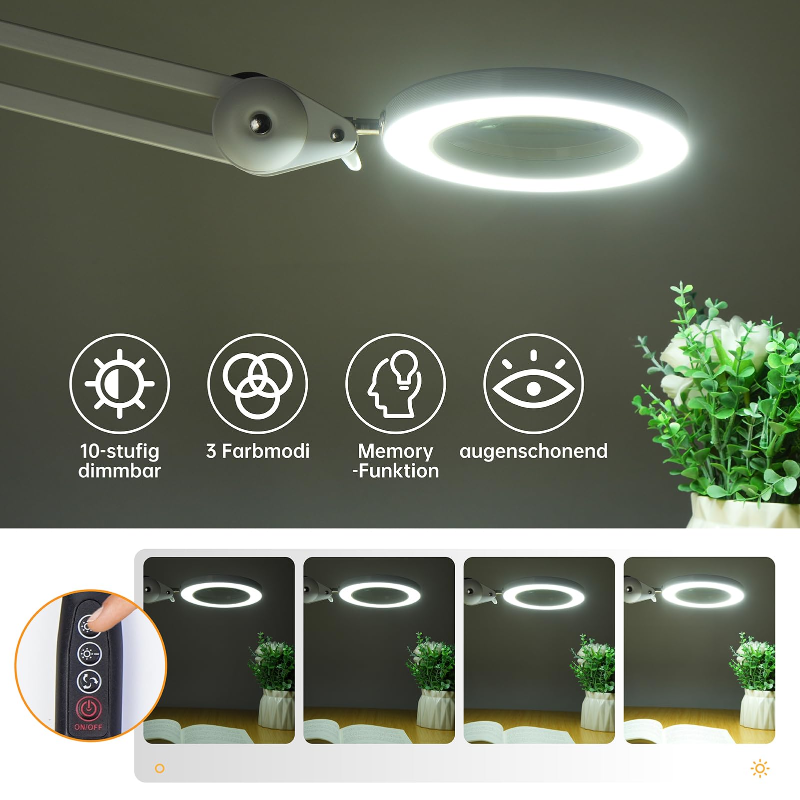 Beyamz LED magnifying lamp, 5 diopter magnifier with light - with clamp, swing arm, dimmable, 3 color modes, 105mm glass lens - magnifier for reading, crafting - 5x magnification