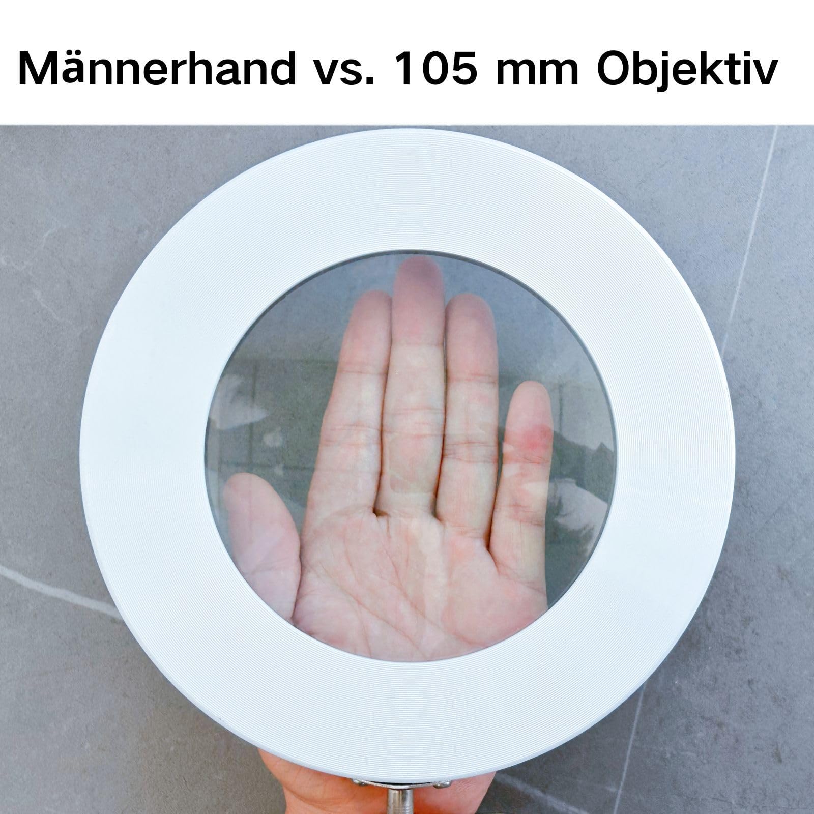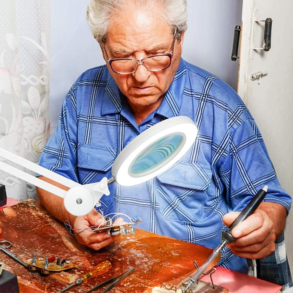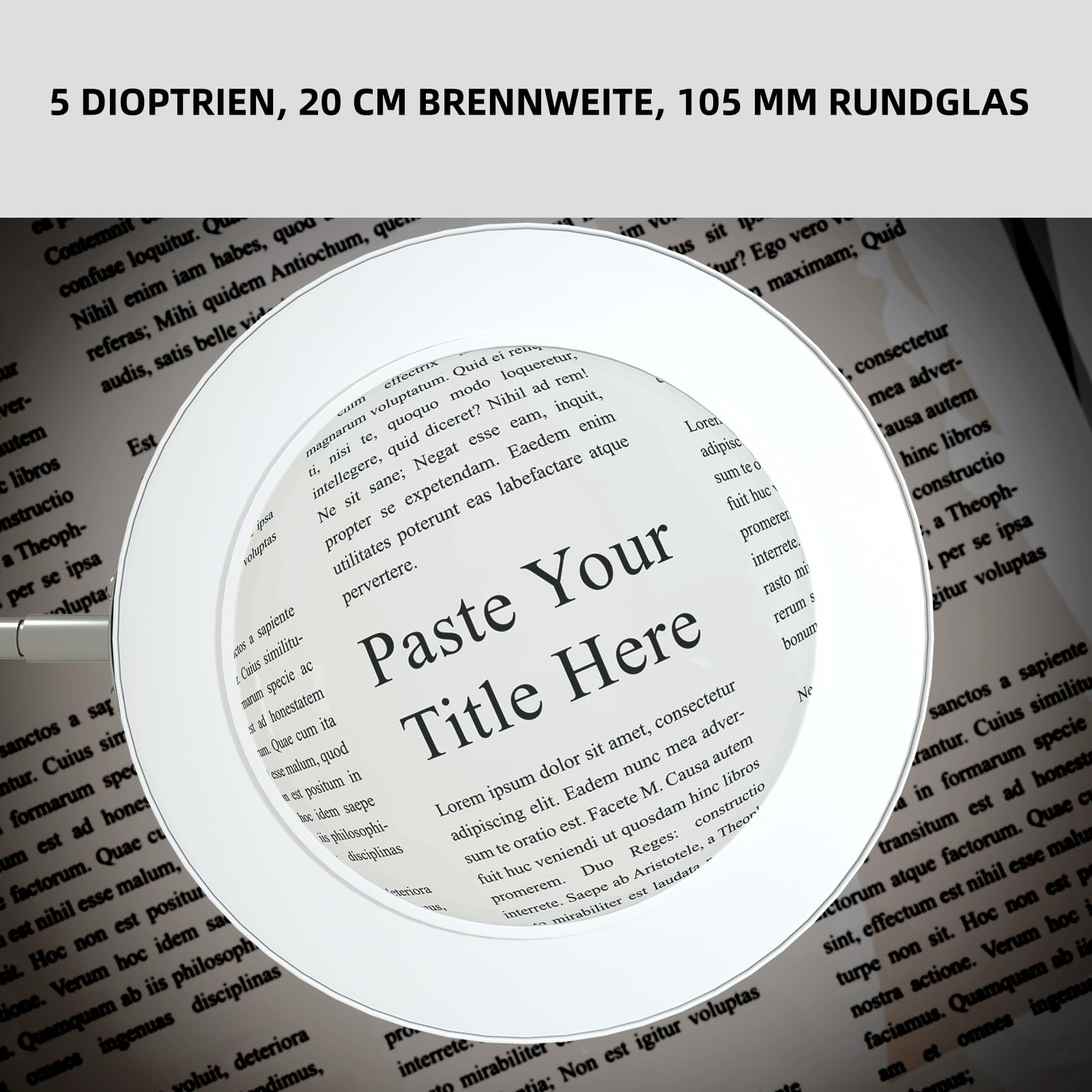 "Ideal for fine work: 5 diopters (2.25x linear/5x area magnification), 10.5 cm diameter, distortion-free view at 20 cm distance. Perfect for reading, sewing, soldering, model making, cosmetics & more. Great gift idea for craftsmen, people with vision problems, professionals & seniors."