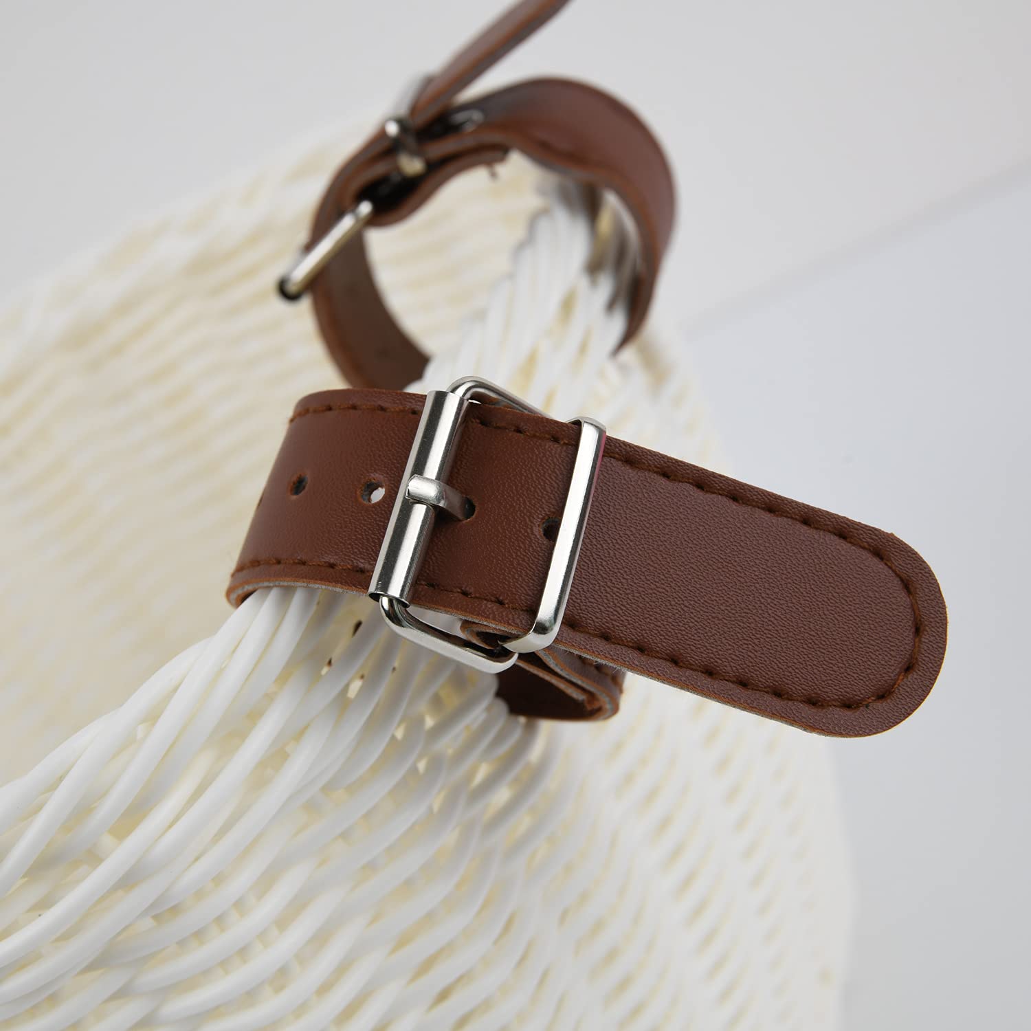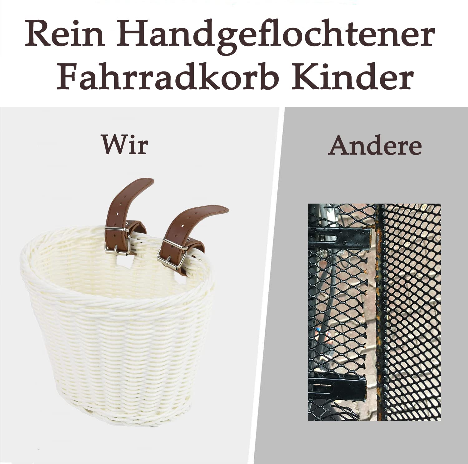 Bicycle basket for children, wicker bike basket for girls and kids in the front, plastic kids bike basket with leather straps, decorative, detachable (White)