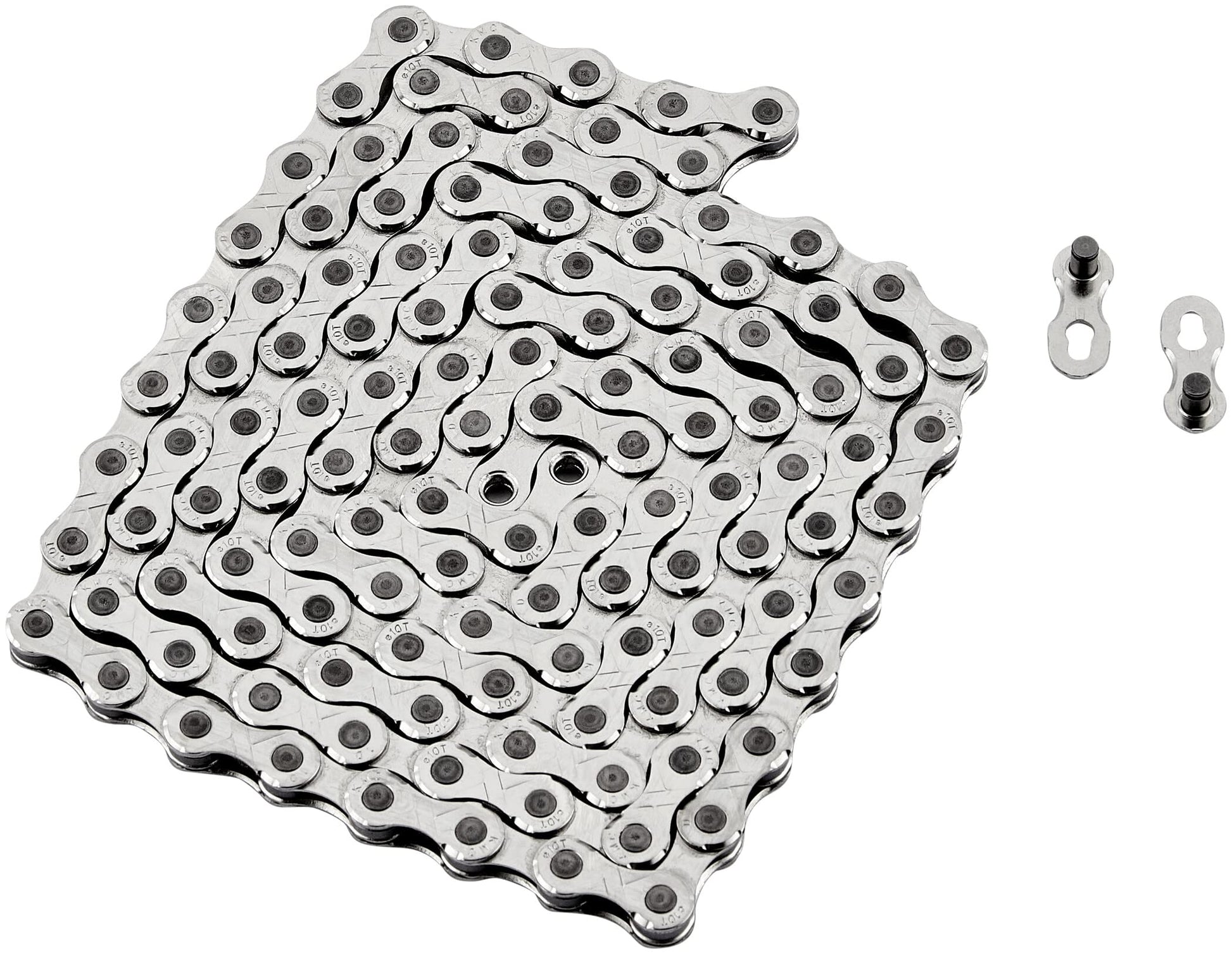 ["10-speed, 1/2\" x 11/128\" Chain","high durability due to reinforced pins, increased torsional strength and minimized tolerances","122 links, with MissingLink closure link","compatible with Shimano / Sram / Campagnolo","Color: silver"]
