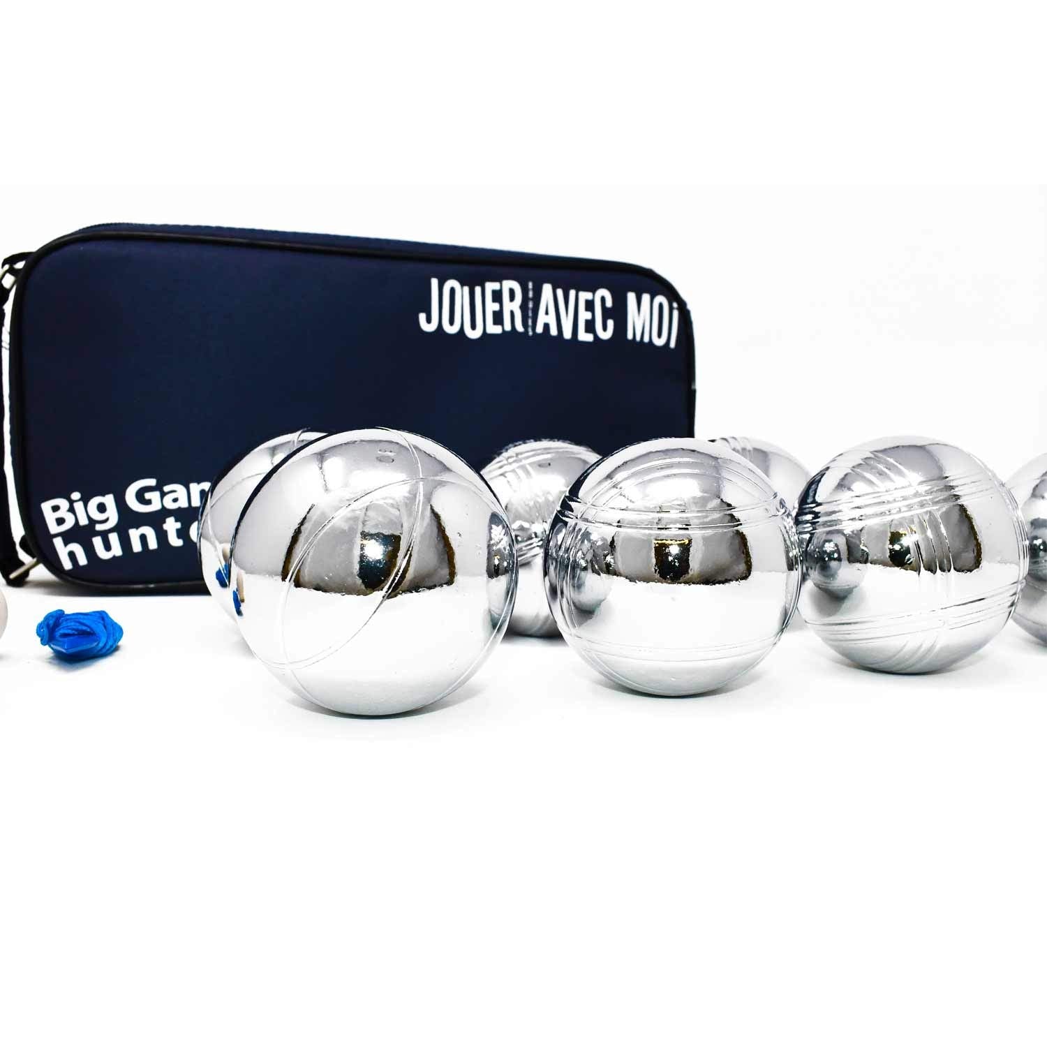 Big Game Hunters 8 Boules Set with rust protection and luxury canvas carry bag - Sturdy 8 Boules Set, Polished and Engraved Official Size.