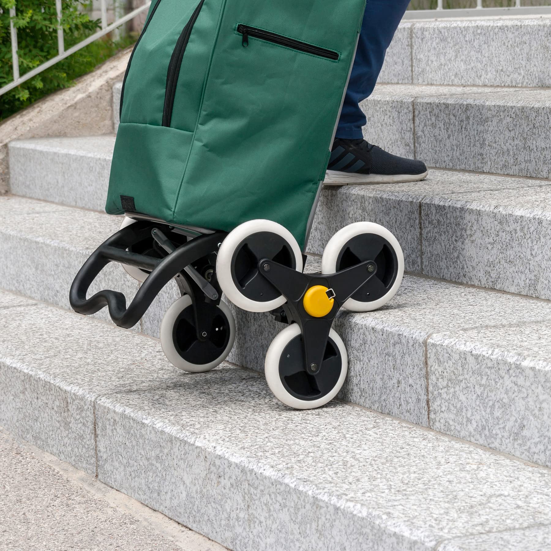 "Suitable for stairs: 6 extra large wheels provide a comfortable stair-climbing function to easily overcome stairs with the shopping trolley.