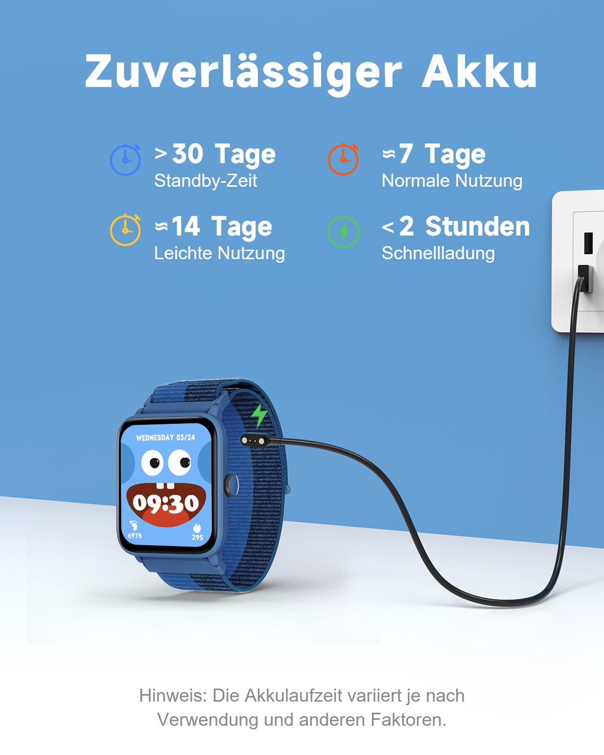 BIGGERFIVE Smartwatch Kids, Fitness Tracker Watch Digital Fitness Watch with Step Counter, 24/7 Heart Rate, 5ATM Waterproof, Sleep Monitor, Alarm, 1.5" HD Touchscreen for Girls Boys 3-14, Nylon