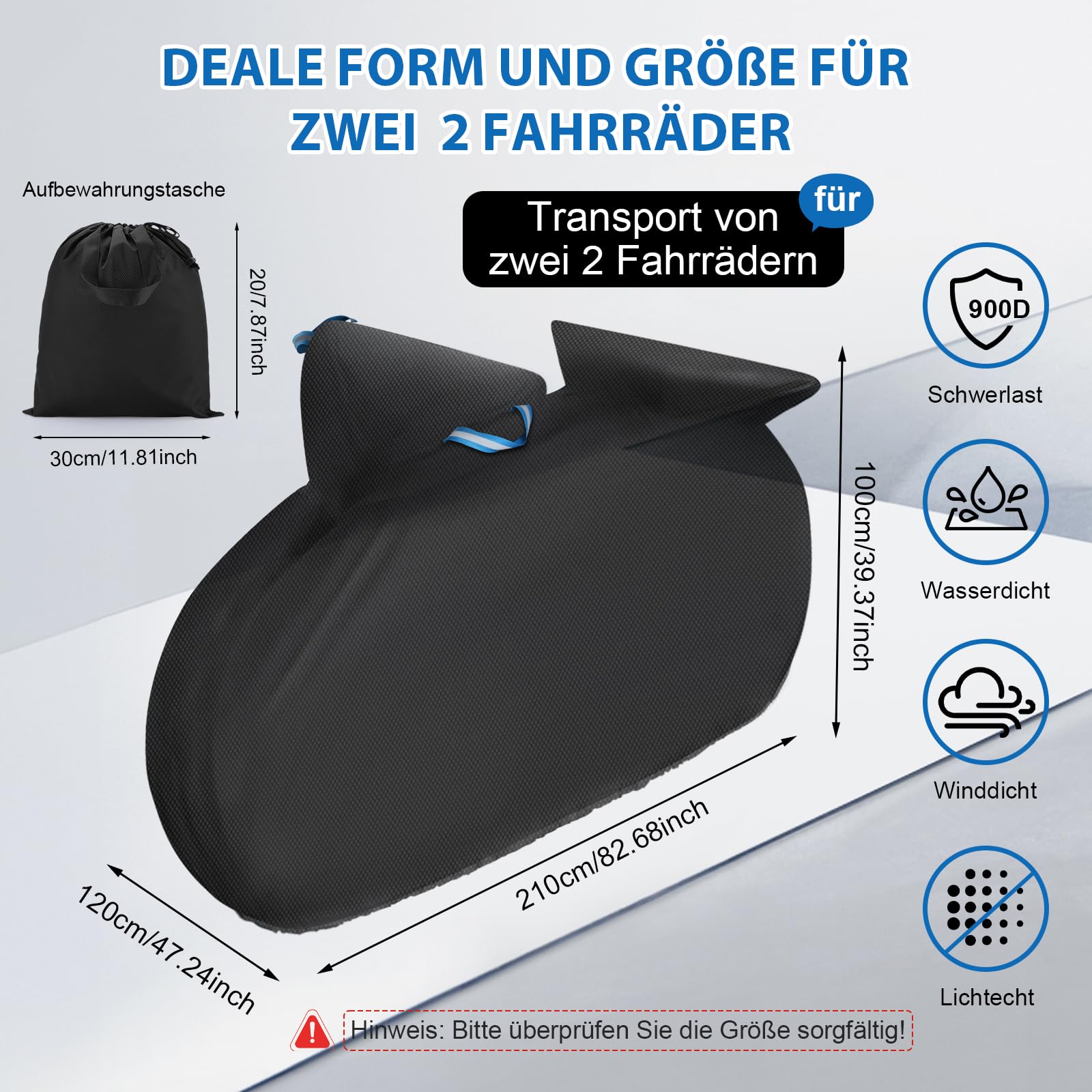 Bike cover for transporting 2 bikes - Wemjaly 900D Heavy Duty bike covers rear carrier outdoor waterproof PU coating bicycle tarp, with 6M elastic cord/storage bag.