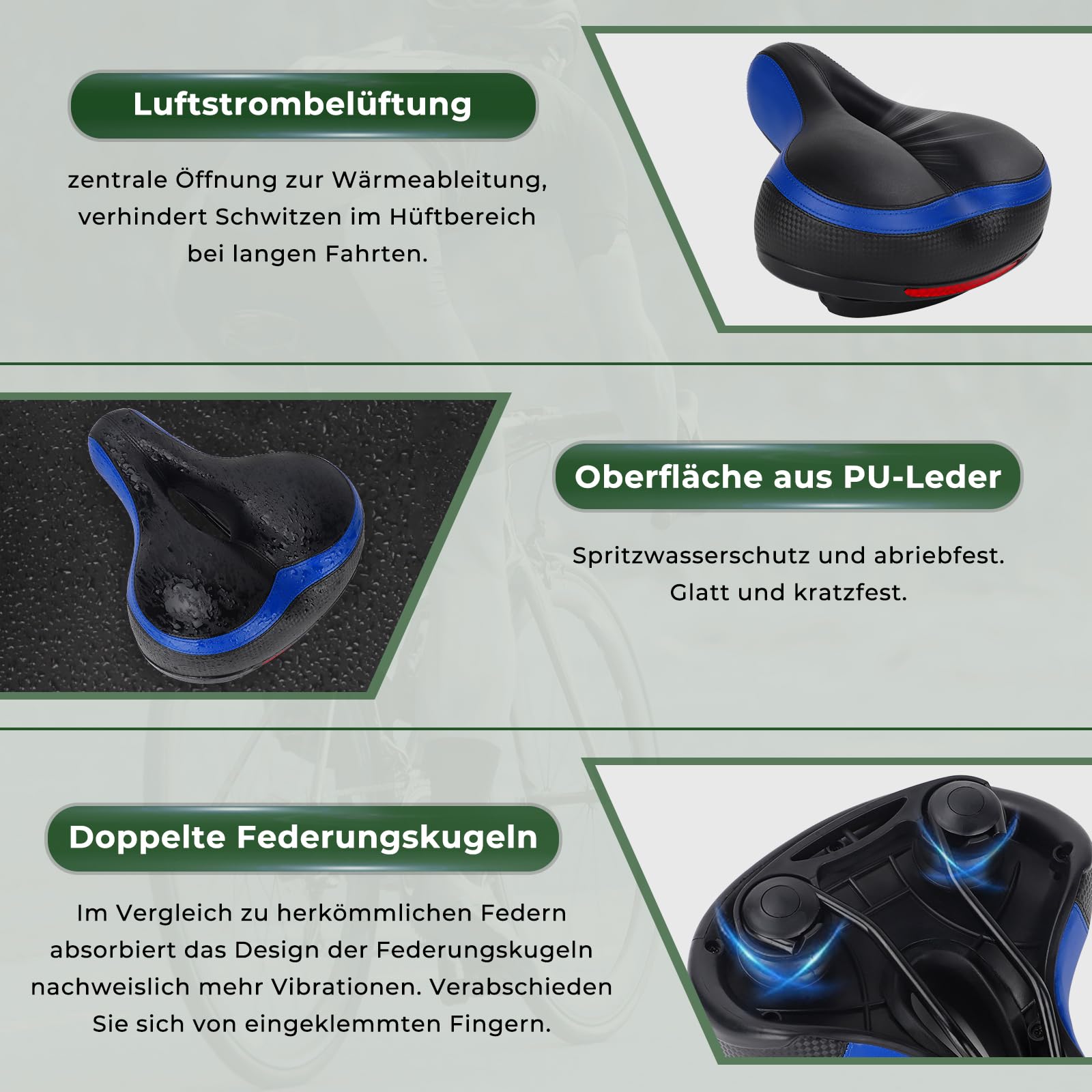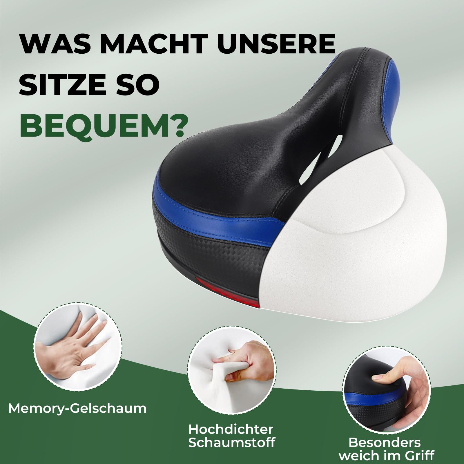 "The ideal saddle for comfortable and secure cycling. The surface of the TONBUX saddle is made of a non-slip and wear-resistant PU leather, which is also waterproof. With high-density and cushioning Softgel padding, it provides you with a comfortable ride. The safety reflectors on the back can alert drivers to the presence of cyclists and increase safety and visibility.