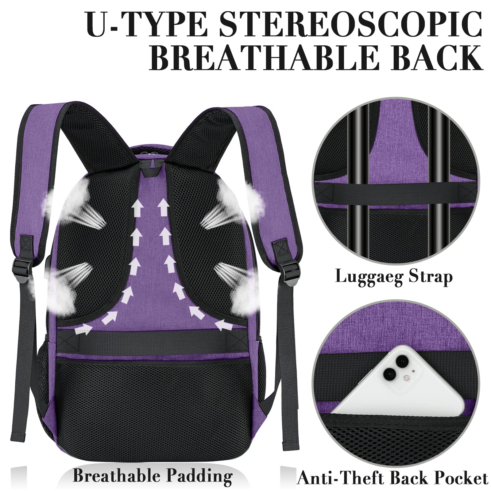 ["LARGE CAPACITY BACKPACK: 3 large, spacious compartments and a large separate sleeve can hold most 13, 14, 15, 15.6, 16, 17.3 inch laptops / iPad / computer. With more than independent pockets for iPad, power bank, A4 files, wallet, pens, cards, clothes and much more. Elastic mesh outer pockets on both sides provide space for umbrella and water bottle. Best Christmas gift for men, women, students, teenagers.","COMFORT: The padded and breathable mesh back of this 17.3 inch laptop backpack helps with air convection, ventilation, and heat dissipation. Comfortable and wide mesh shoulder straps with plenty of sponge padding relieve the shoulders. The ergonomic design ensures the distribution of the backpack's weight and ensures that the backpack can be comfortably carried even when fully loaded. Good for Mother's Day gift, Father's Day gift.","USB PORT & ANTI-THEFT: With hidden back pockets, our anti-theft backpack provides private space and protects your valuables from thieves. The built-in USB port is convenient for safely charging your phone through the connected power bank. (Power bank is not included).","QUALITY MATERIAL: Made of durable and high-quality waterproof fabric. Product size: 19.1\" x 13.8\" x 7.9\" / 33 x 20 x 48.5 cm (LxWxH). Weight: 1.4 kg. Backpack capacity: 25-40 L. This laptop backpack is large and durable, perfect for college, travel, business, daily use, and outdoor activities.","100% Guaranteed Service: We hope you are completely satisfied with our men's backpack from product to customer service. For further questions, contact us immediately, we are always happy to assist you!"]