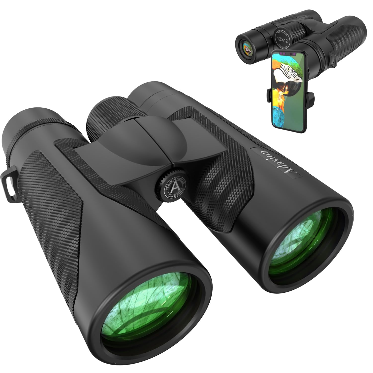 ["Wide field of view - 10x magnification, 42mm objective lens diameter; feature a 367/1000 yards large field of view; When using this binocular, the vision is far and very clear for binocular gain.","Professional high-performance binoculars - Multi-coated aspherical lens elements ensure excellent light transmission and minimal distortion, better image brightness, contrast, and quality. The Bak-4 prism has a perfectly round exit pupil, providing a bright, clear, and razor-sharp view.","Slim and solid - Daily waterproof housing with rubber coating for shock resistance and a firm, comfortable grip, durable and portable for outdoor use, also suitable for hostile environments. But please do not submerge the binoculars in water.","Easy adjustment - The central focusing knob of this compact binocular ensures quick and highly precise focusing. It can also be adjusted to different distances with the eyepiece ring on the right side. It is also possible to use it with a tripod. Therefore, it is very convenient for observing something over a longer period of time.","Versatile use - This binocular is designed for bird watching, hiking, hunting, climbing, traveling, football-basketball, or any sports competition, concert. And it is also an ideal gift for Father's Day"]