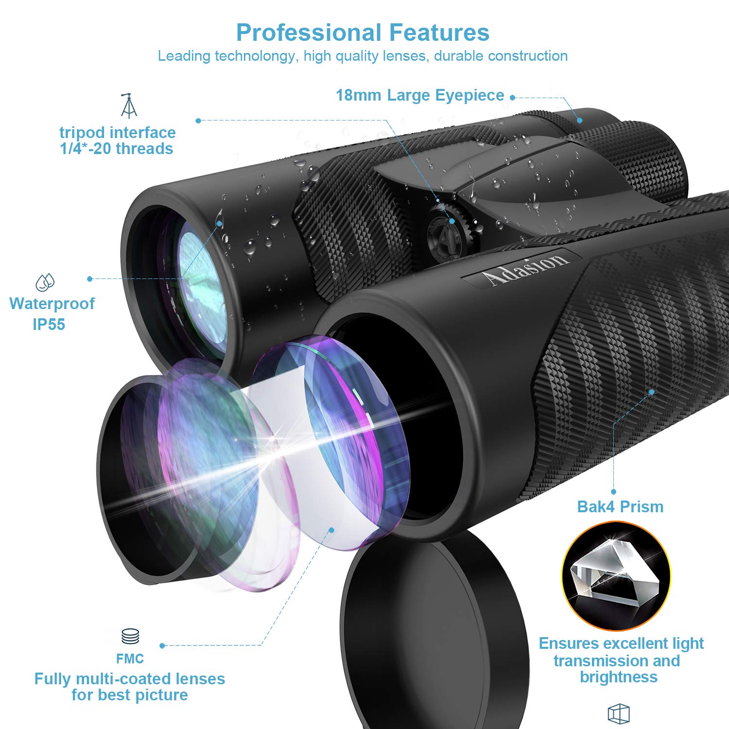 Binoculars for adults, 10 x 42, with tripod and smartphone adapter, 18mm large objective lens, super bright, waterproof binoculars for bird-watching, traveling, astronomy, sports, and wildlife.