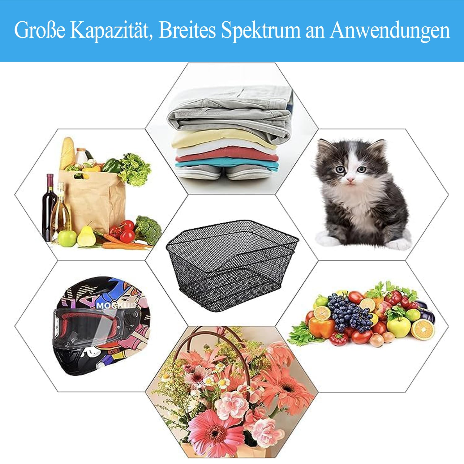 ["Bike Universal Rear】Bike basket includes screw attachments, suitable for women or men bike carriers bike basket.","【QUALITY MATERIALS】The rear bike basket is forged from high-quality metal wire, not easily deformed, stable load-bearing. The outside of the rear bike basket is coated with an anti-rust coating.","【Large Space + Wide Use】There is a three-dimensional space of 22 liters for this rear bike basket, which can carry a weight of 55 lbs. Perfect for shopping, taking pets, going to school, going to work, excursion.","【EASY MAINTENANCE】When the basket needs to be cleaned, simply wipe it with a damp cloth or rinse it with water so you can use it for a long time.","【Quality Commitment】All bike rear baskets have been extensively and rigorously tested and sold by us. If you have any questions, please feel free to contact us. We will provide a satisfactory solution for you."]