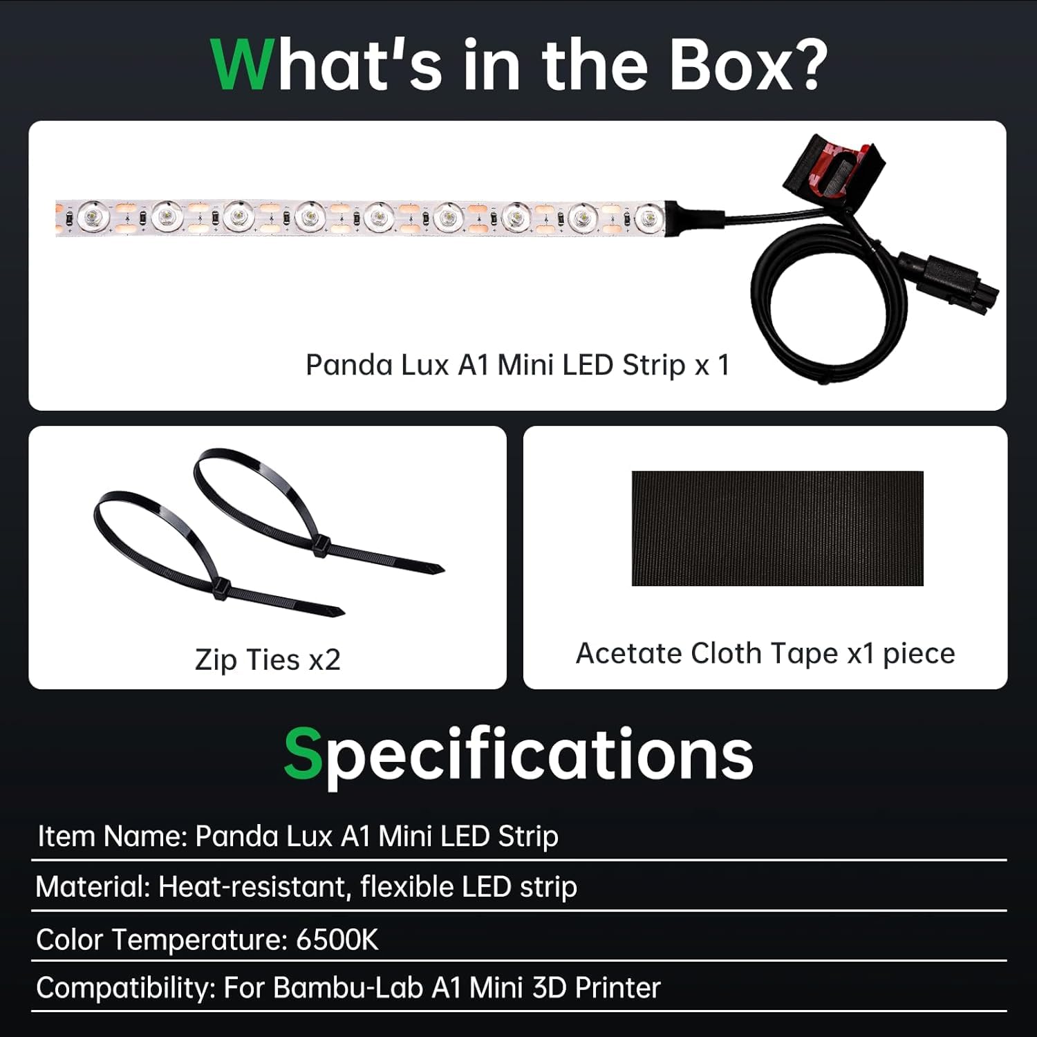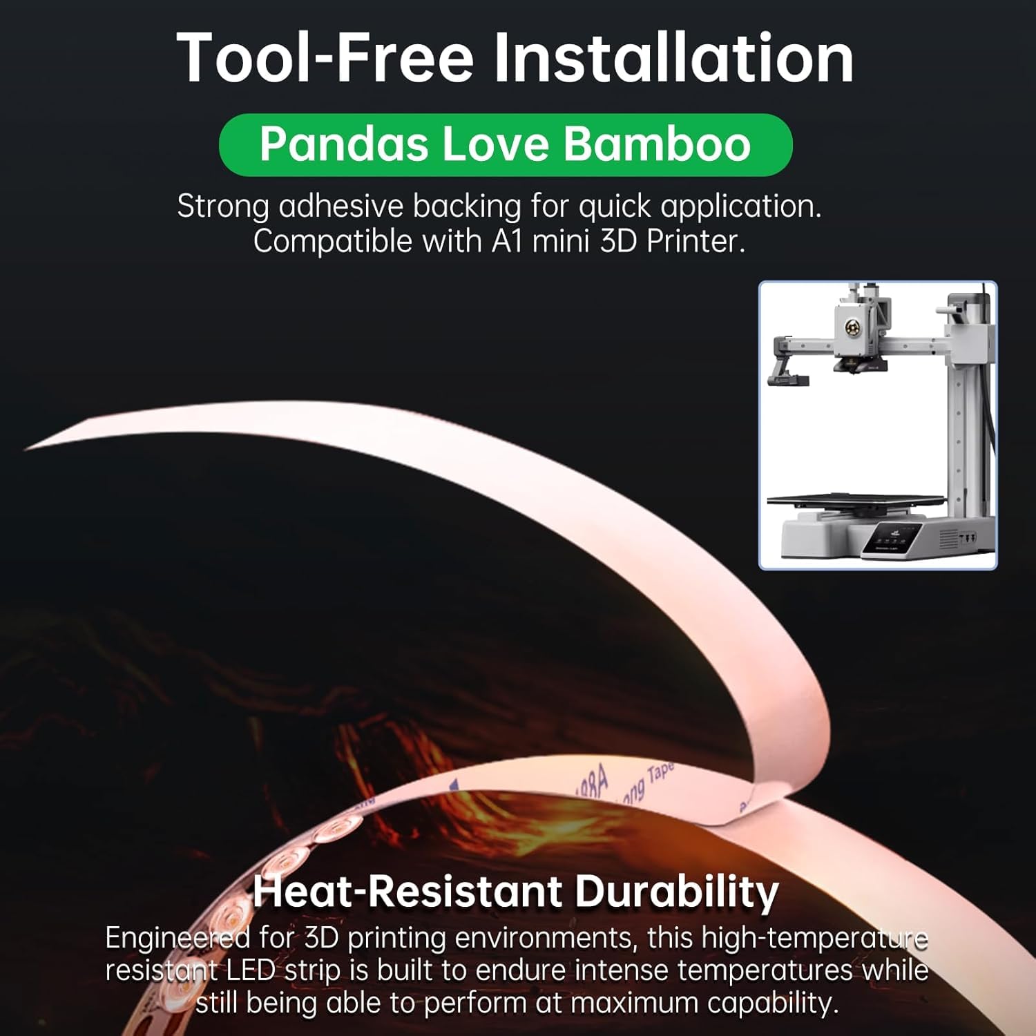 BIQU Panda Lux, LED light bar compatible with Bambu-Lab A1 Mini 3D printer, LED light strip upgrade kit, easy installation, high brightness, control via standard screen.