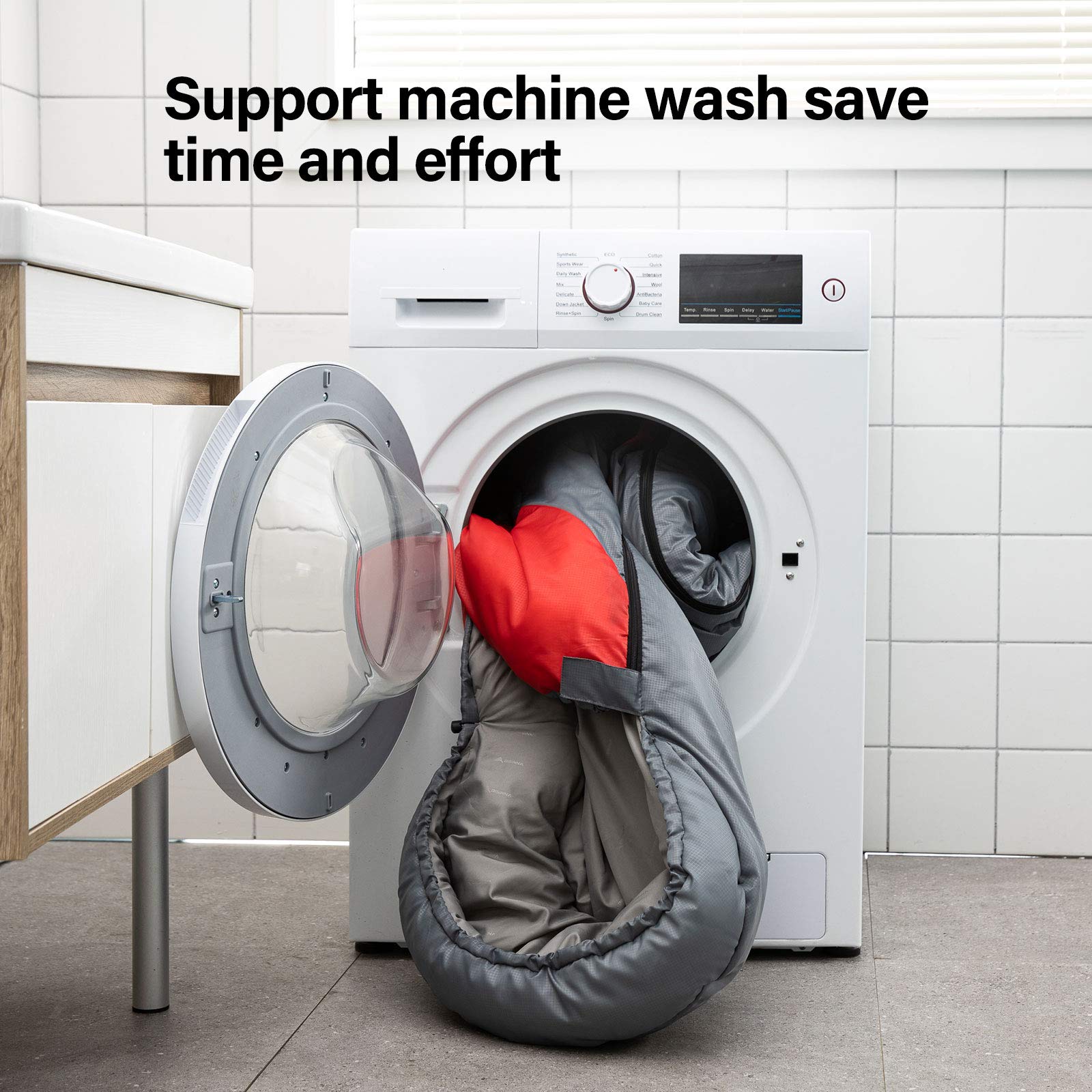 ["Easy to Clean and Portable"] The sleeping bags are machine washable and easy to clean. Additionally, the sleeping bag comes with a compression sack with straps, making it easy to transport and store wherever you go.