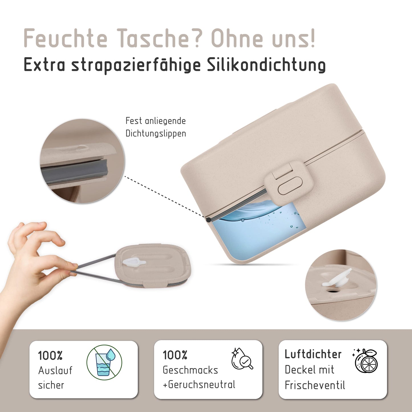 ["💚 100% AUSLAUFSICHER & SPÜLMASCHINENFEST: Our bento box is easily cleaned in the dishwasher and your little one's kindergarten bag always stays dry.",