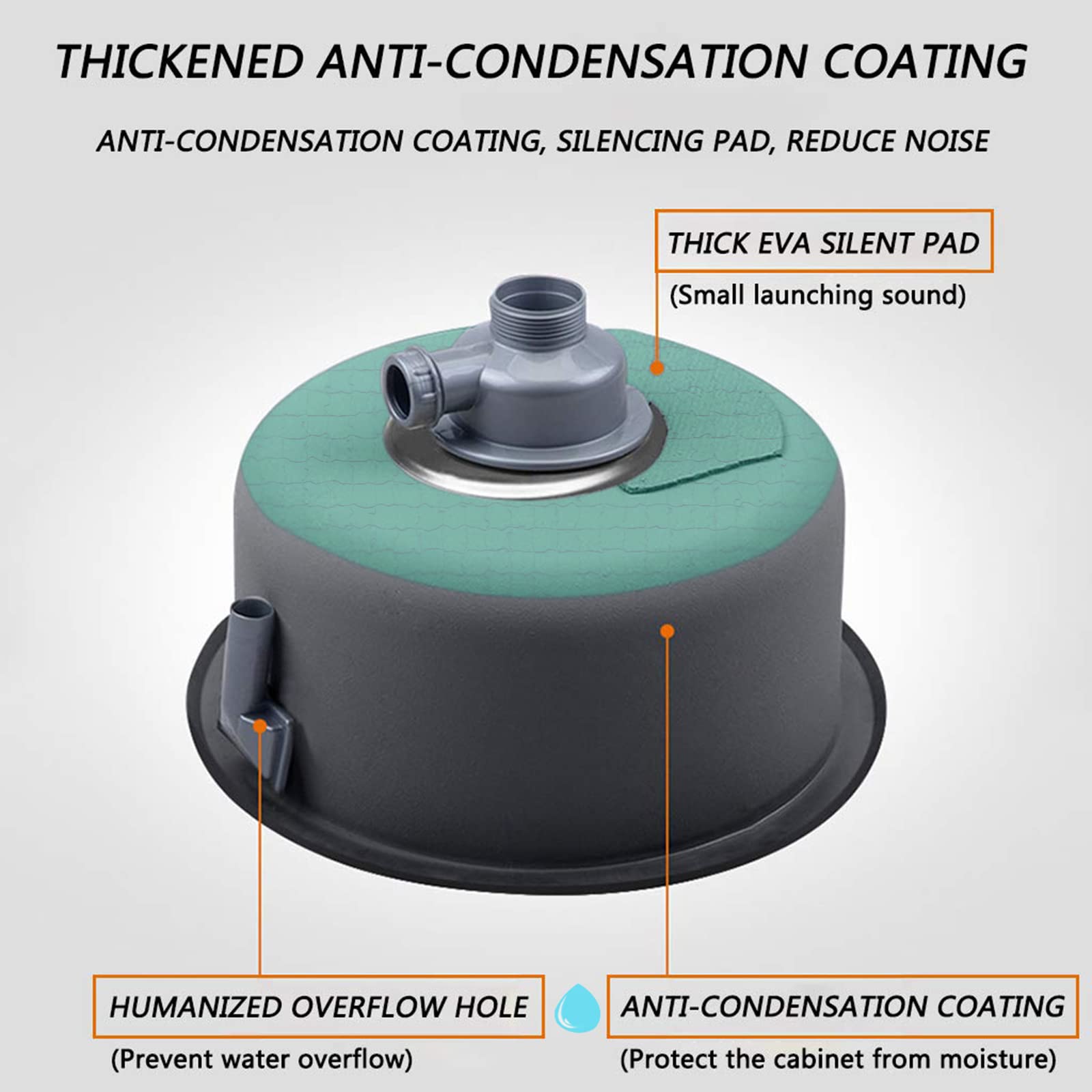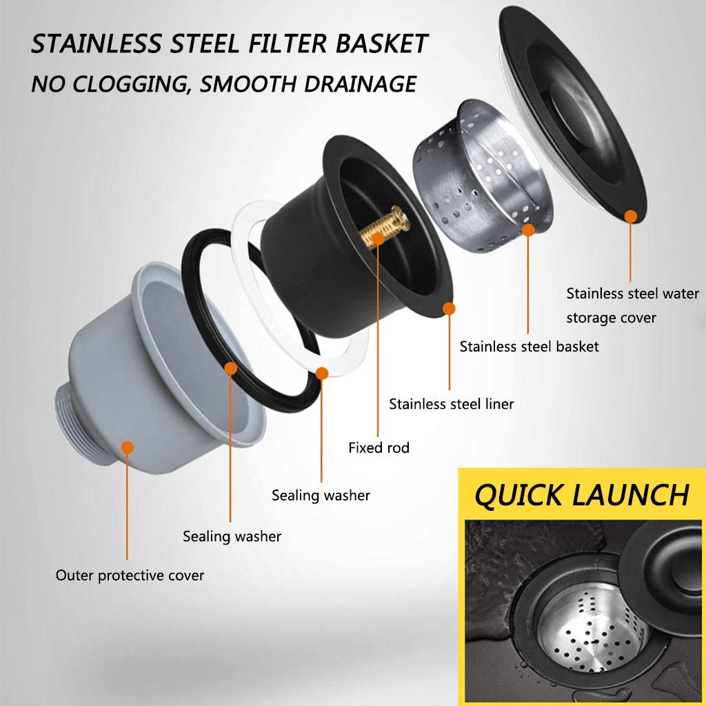 【Sink Material】- The sink is made of SUS304 stainless steel, a thickened plate, a high-temperature degreasing and decontamination layer, a high-temperature sealing corrosion protection layer, an acid-base rust protection layer, and a corrosion protection layer for the wire drawing process. These materials effectively reduce the formation of bacteria, lead to strong decontamination, and prevent the rusting of the sink.",