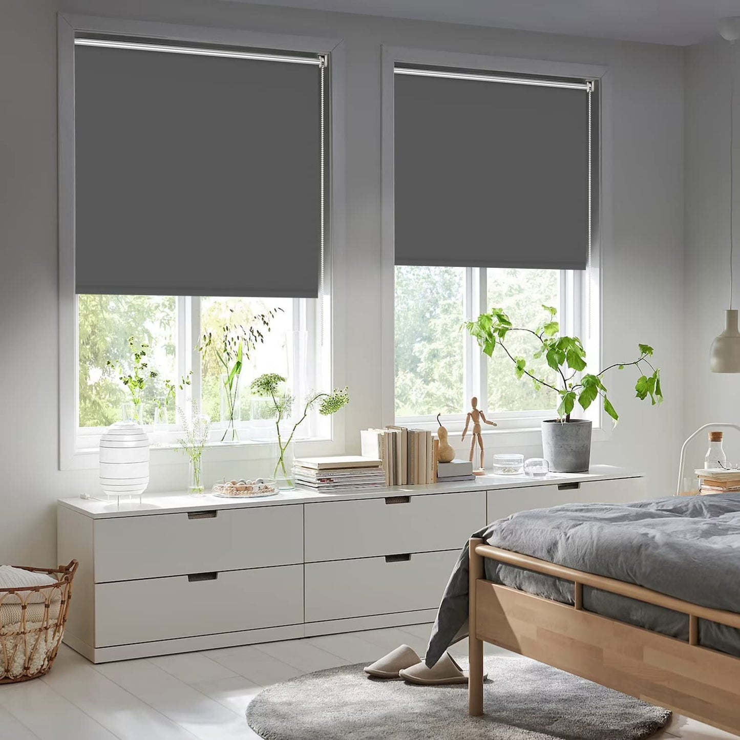 Blackout roller blind without drilling, for windows 47" x 78" (fabric width 45") in dark gray. Thermal roller blind with clamp fixing, side pull roller blind for privacy and sun protection. Wall mountable.