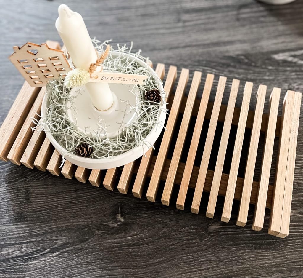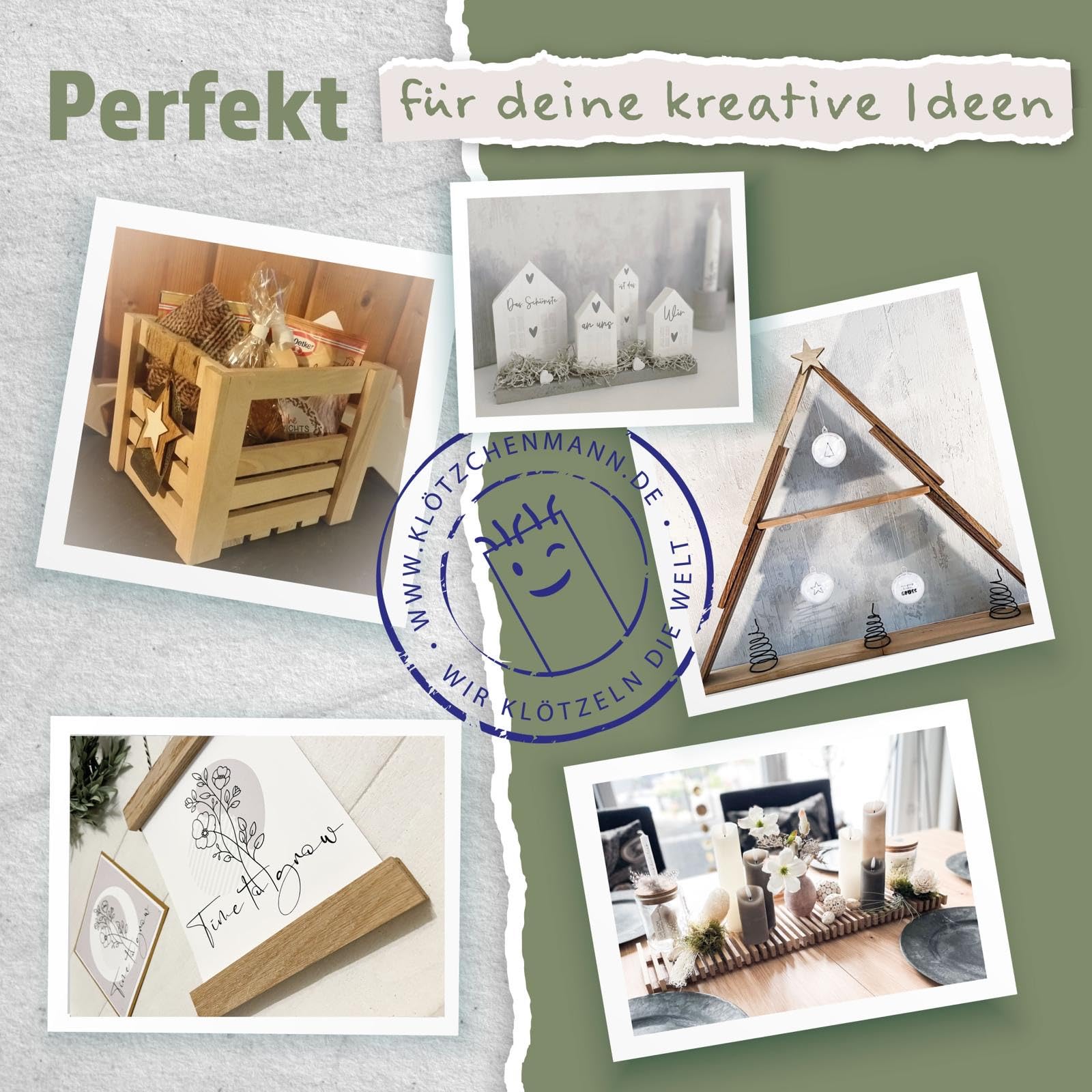 "Creativity knows no bounds: A few of these oak wood blocks, some wood glue, and you're ready to go. You can create amazing things like - napkin holders - picture frames - practical helpers for the household (e.g. cutlery holders, spice racks, small shelves, drawer organizers, trays) - decorative home accessories - tabletops - wall coverings - organizers - toy houses and stables - and more."