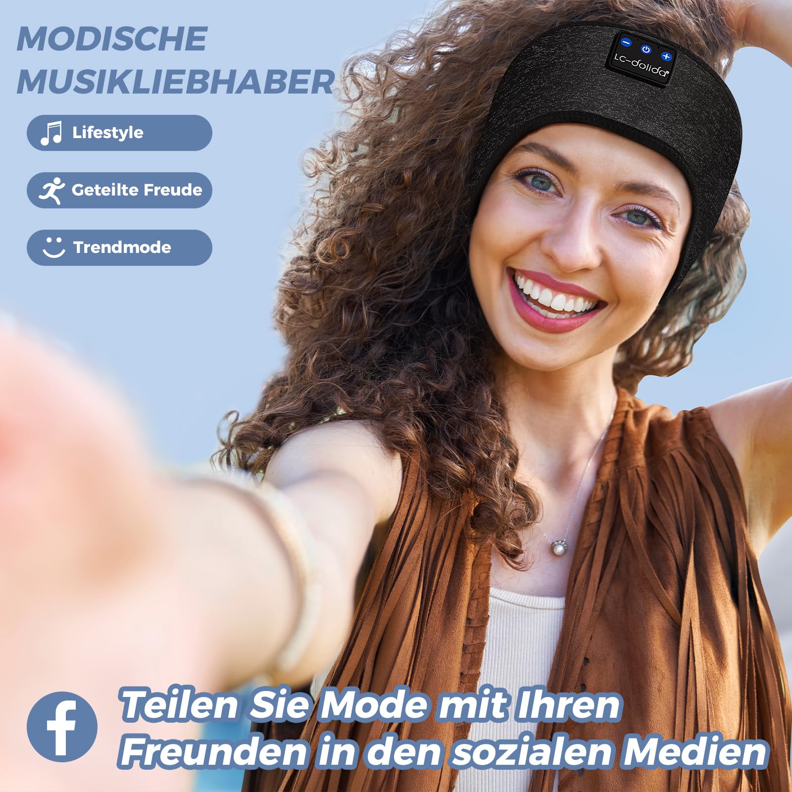 ["Upgraded Sleep Headphones Bluetooth】Our Bluetooth Headphone is equipped with the latest Bluetooth 5.4 technology and can be paired with a Bluetooth smartphone in seconds. The connection is faster and more stable. The high-quality chipset of the sleep headband headphones ensures higher and stronger sound quality, perfect for fitness training, running, yoga, and other outdoor activities","【High Performance Battery for up to 14 Hours】Bluetooth Wireless Music Headband with the integrated lithium battery only needs 2 hours to charge, and plays continuously for up to 14 hours, allowing you to listen to music and fall asleep quickly without wearing additional headphones. With professional and beautiful packaging, Bluetooth Sleep Headband Headphones are a Christmas gift for your friends or family! Bluetooth headband Christmas gifts for women/men","【Super Soft Comfortable Washable Sleep Headphones Bluetooth】Our sleep headphones are made of high-quality quick-drying upper material with breathable mesh lining, thin and compact, LC-dolida Bluetooth sleep headphones are washable, simply remove the module and clean the Bluetooth sleep headband","【Best Sleep Headphones for Side Sleepers】Ultra-soft sleep headphones with 2 ultra-thin flat speakers also work for side sleeping, no pressure on your ears. Sometimes you may even forget you're wearing them. Truly wireless, no more cable chaos! They are comfortable enough. It is made of durable braided cord, the sleep headphones can easily stretch and fit all head sizes","【Professional 24-Hour Customer Service】Our 3 in 1 Bluetooth Headband Headband can be used as Bluetooth Sleep Headphones & Sleep Mask & Sports Headband, it would be a great partner for you! Perfect fit for sports or sleep. If you are dissatisfied, we will immediately refund the full amount! If you have any questions, please feel free to contact us"]