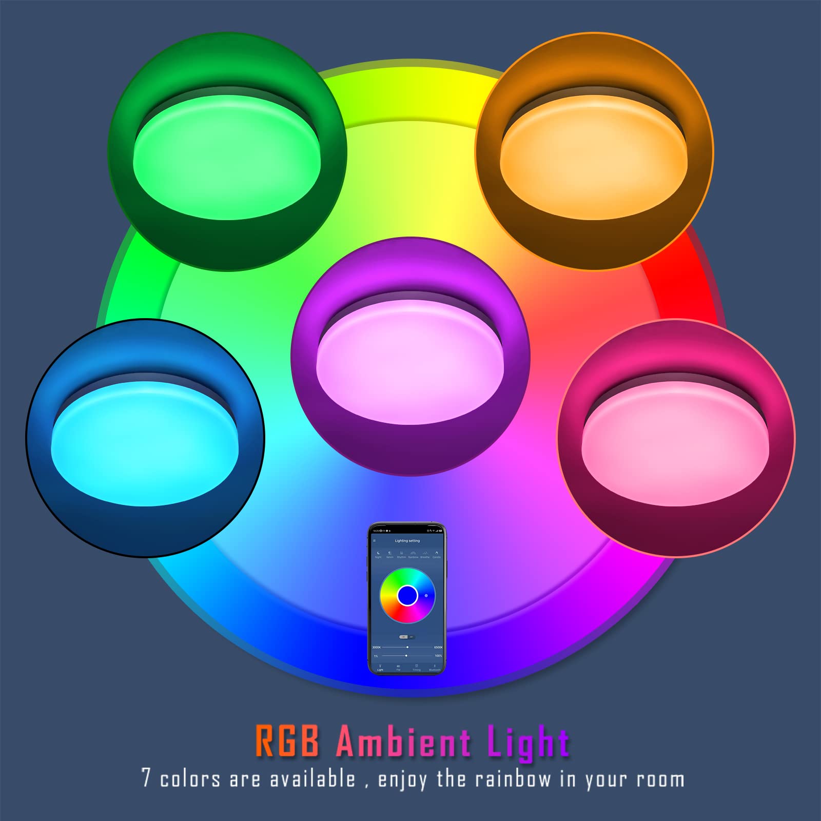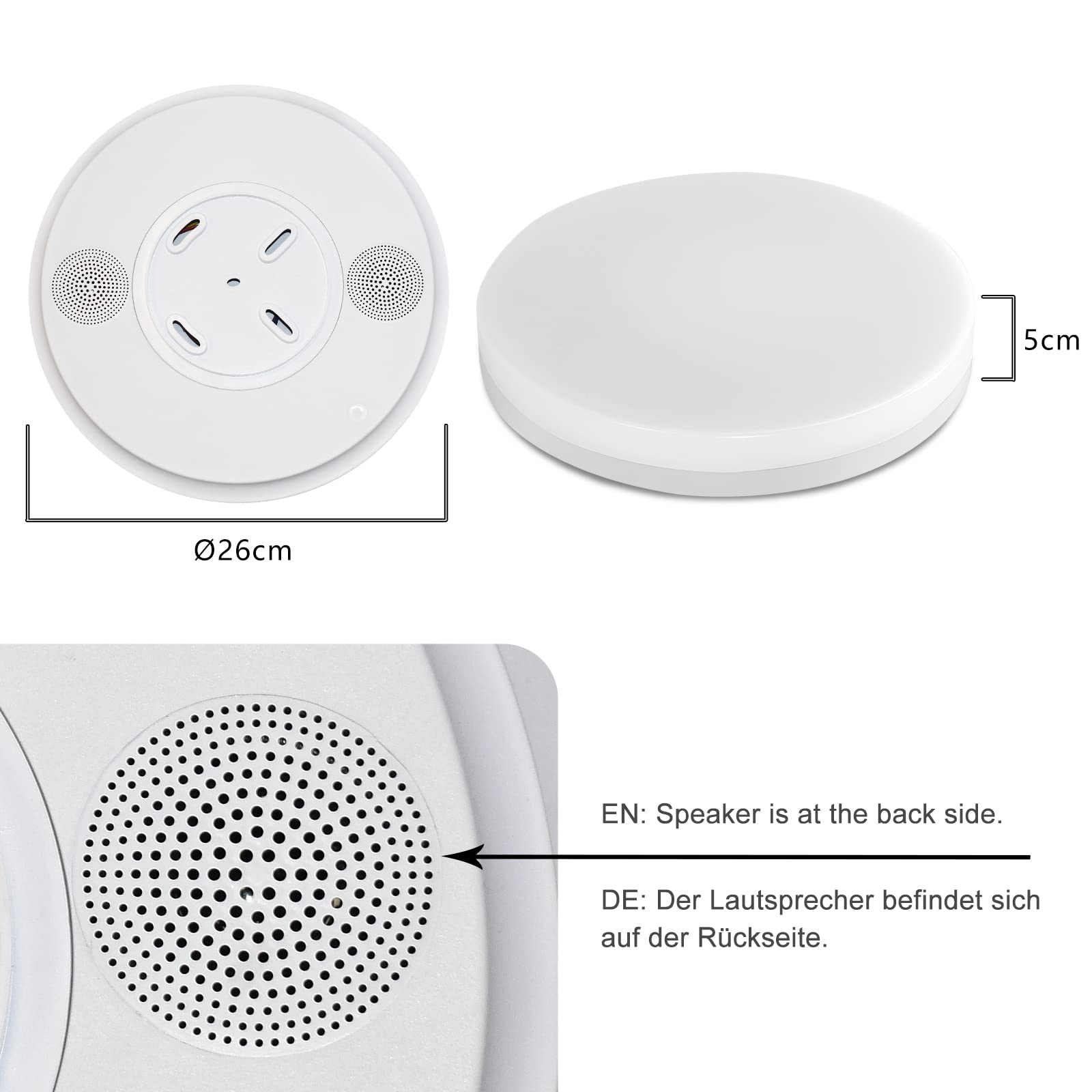 Bluetooth ceiling light 24W LED ceiling lamp with speaker, remote control and app control, RGB color changing, dimmable, IP44 waterproof, White noise adjustable for bedroom children's room Ø26CM