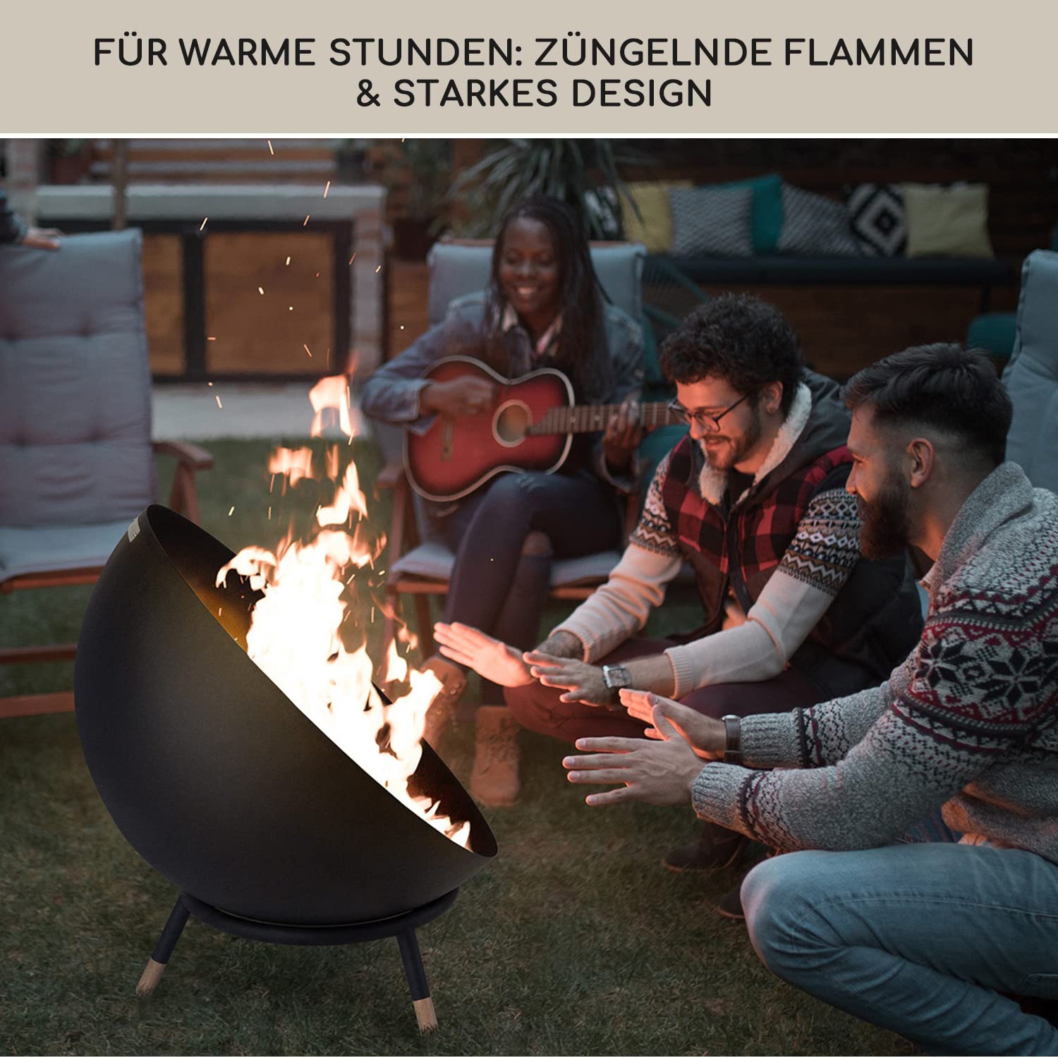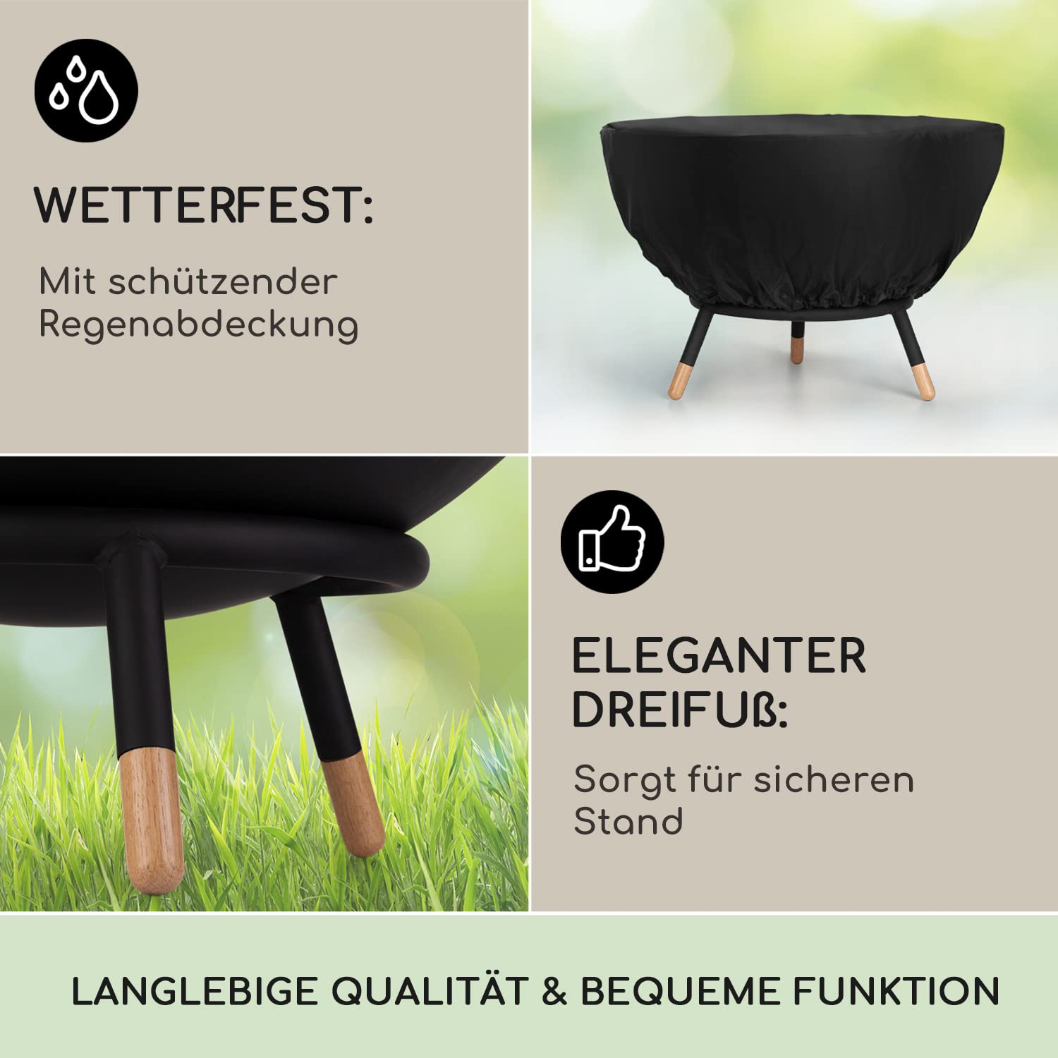 ["FIRE EXPERIENCE UNDER THE STARRY SKY: Enjoy our fire pit all year round. Gather around this outdoor fire pit with your family or friends and have an unforgettable fire experience like never before.", "PRACTICAL AND VERSATILE FIRE PIT: Our garden and patio fire pits reflect heat when tilted. Light a campfire, or tilt our fire pits and set them up diagonally to enjoy the fire display.", "EASY TO SET UP: No assembly tools are required, simply set up the fire pit on the stand, and the camping fire pit is ready to use. After use, the included cover allows you to safely store this fire pit.", "LUXURIOUS, STURDY DESIGN: This garden fire pit is equipped with a stable, high-quality, 1.8 mm thick steel construction. The tripod stand prevents the fire pit from tipping over and ensures a secure stand in your garden.", "ROBUST & WEATHERPROOF: The sturdy steel bowl of the fire pit prevents cracks and damages and offers impressive durability. The high-temperature resistant coating & cover ensure a long lifespan."]