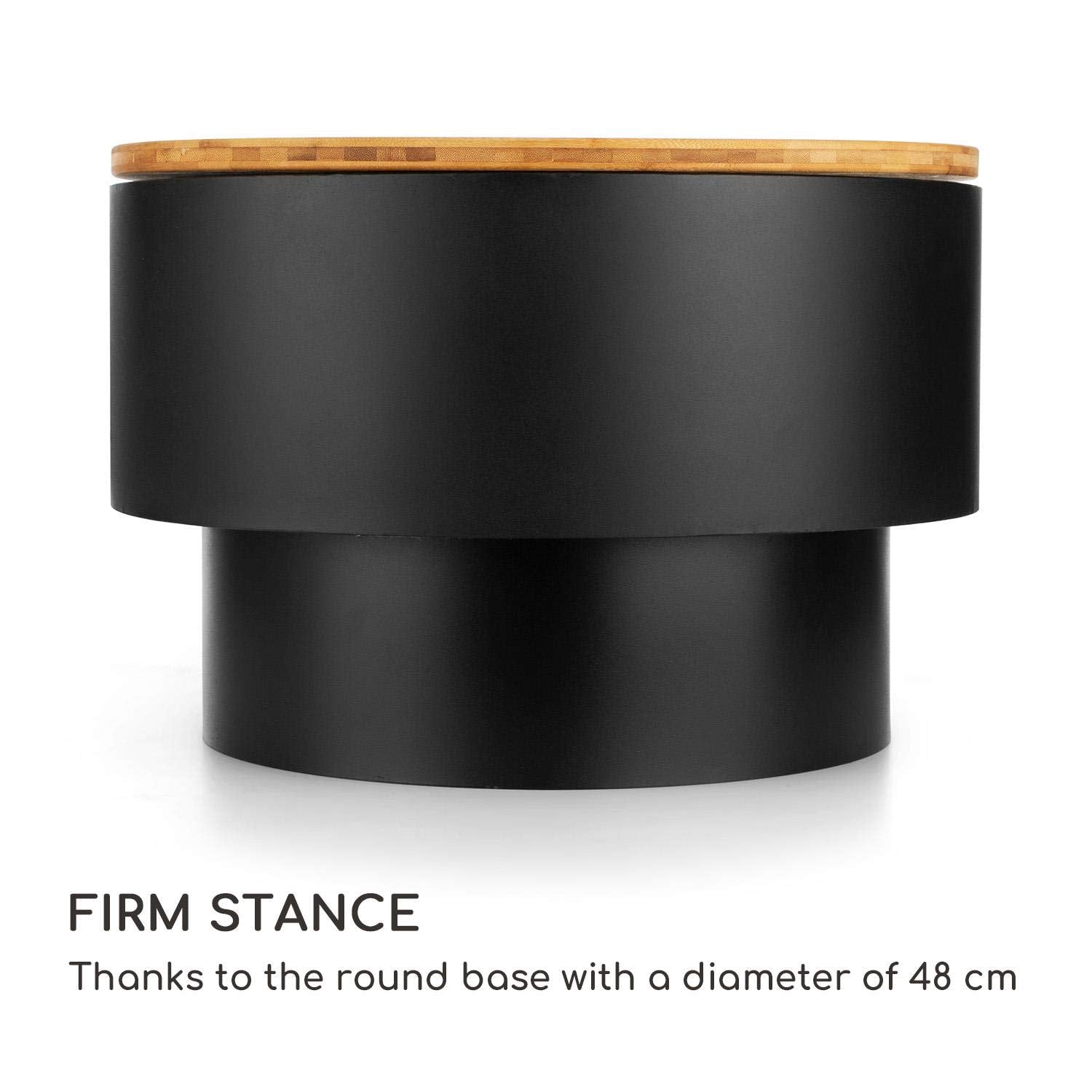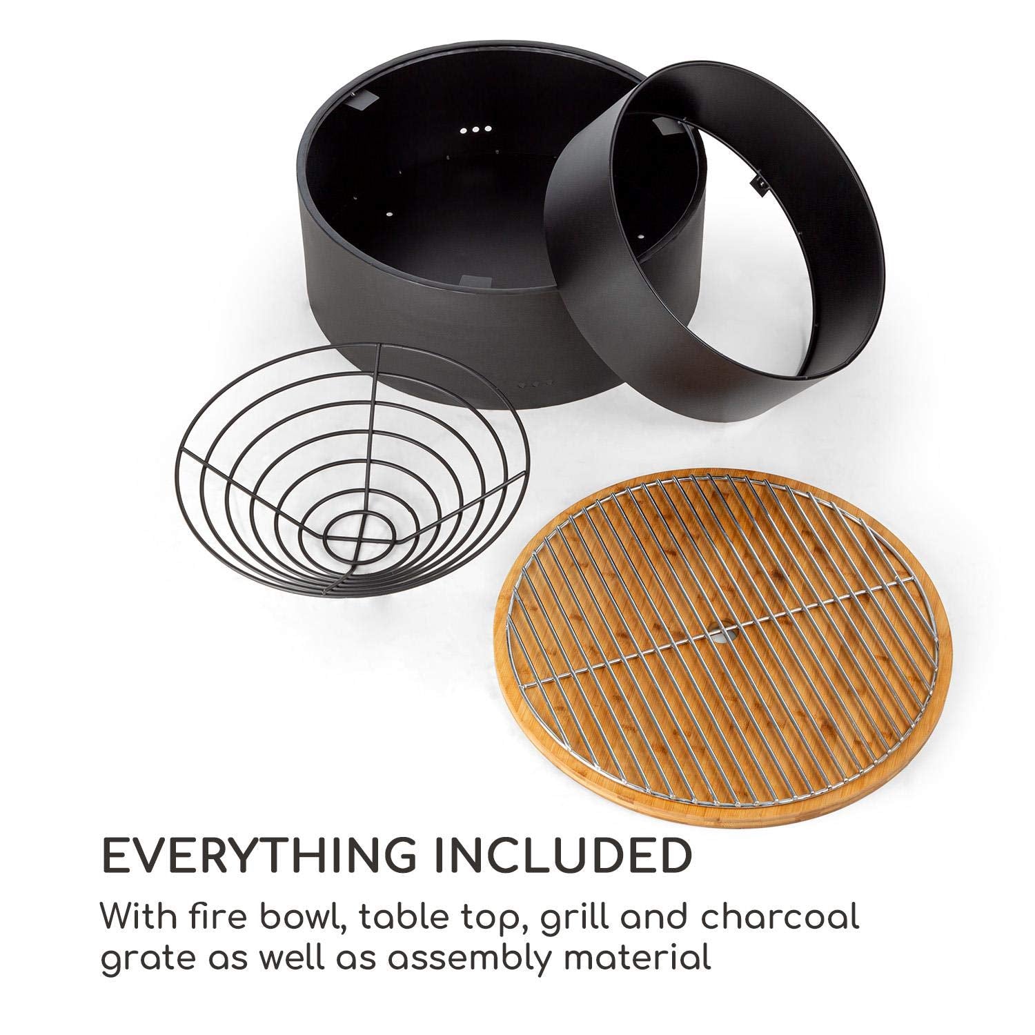 Blumfeldt Pompeii Fire Pit & Grill, Fire Tonne, chrome-plated grill grate, fire pit: Ø 60 cm, grill grate: Ø 56 cm, dimensions: 60 x 40 cm (ØxH), charcoal grid, with bamboo table top, black