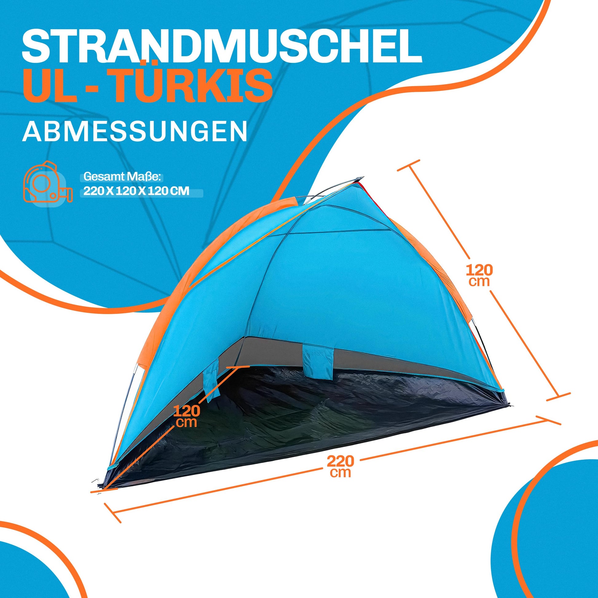 Spacious accommodation: With dimensions of 220 x 120 x 120 cm, the beach shelter offers enough space for multiple people. You can comfortably sit, lie down, and securely store your beach essentials. Ideal for family outings, friends, or solo trips - the shell provides the space you need.